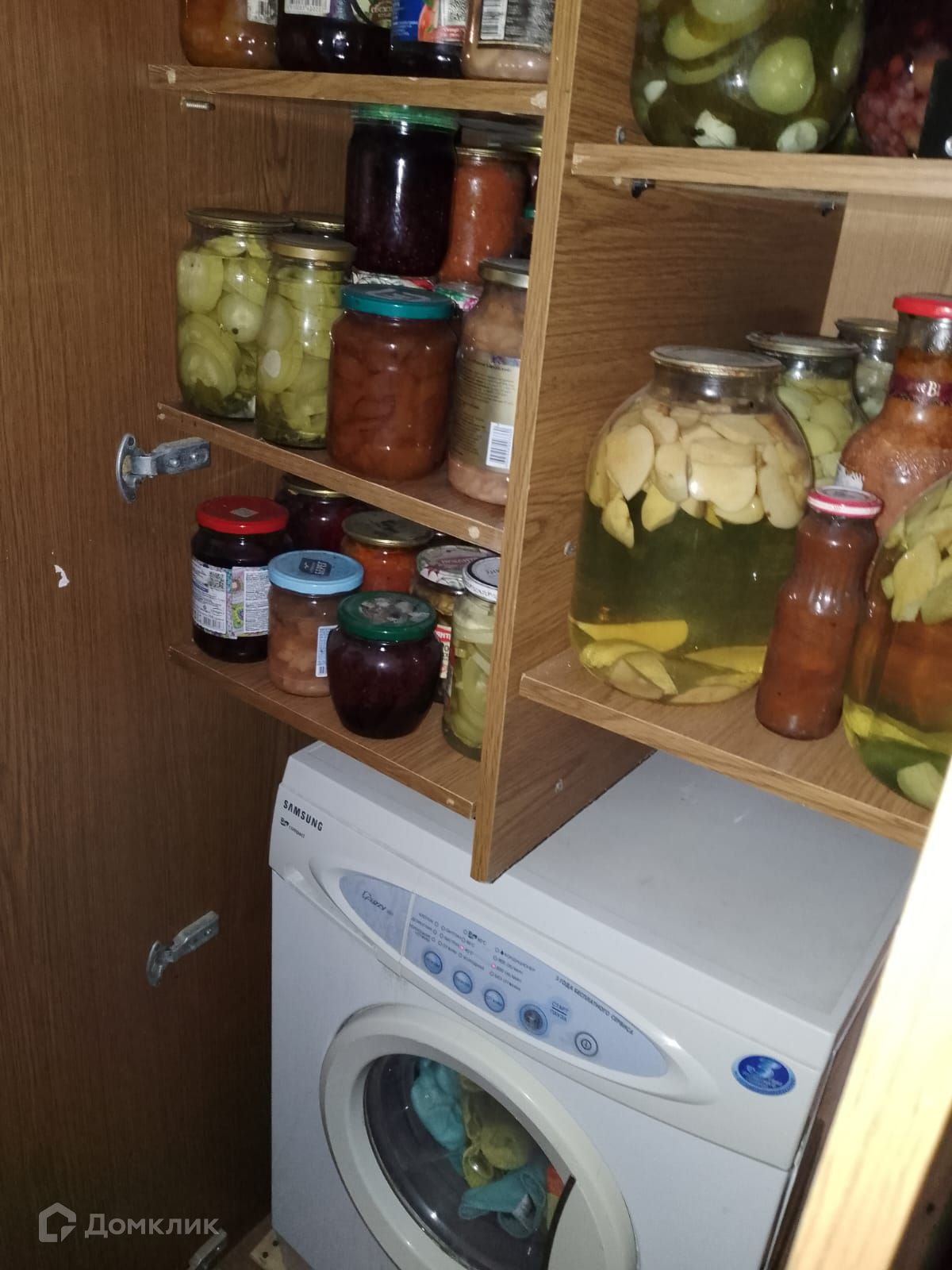 - В коридоре стоит шкафчик для хранения и в нем стиральная машинка