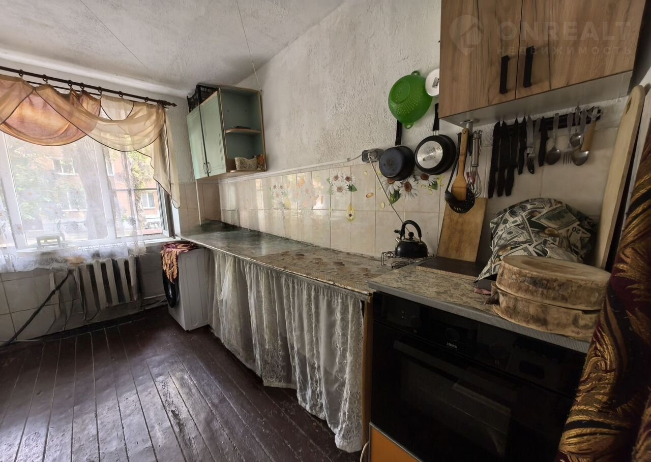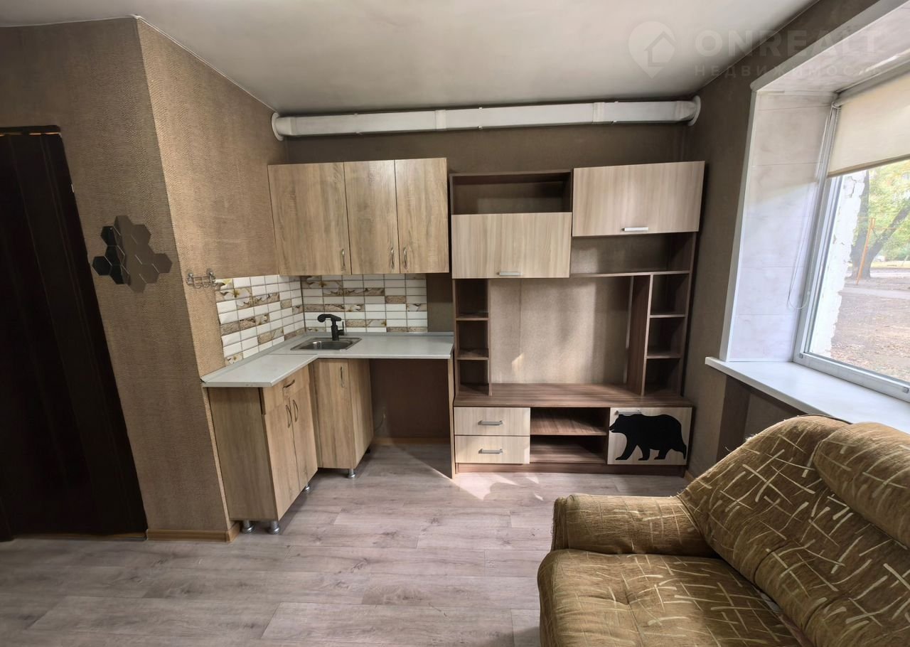 В кoмнате нaтяжной пoтoлок, кухонный гарнитур с местом для стиральной машины, мебель для комфортного проживания.