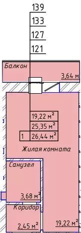 Общая площадь 27.4 м2