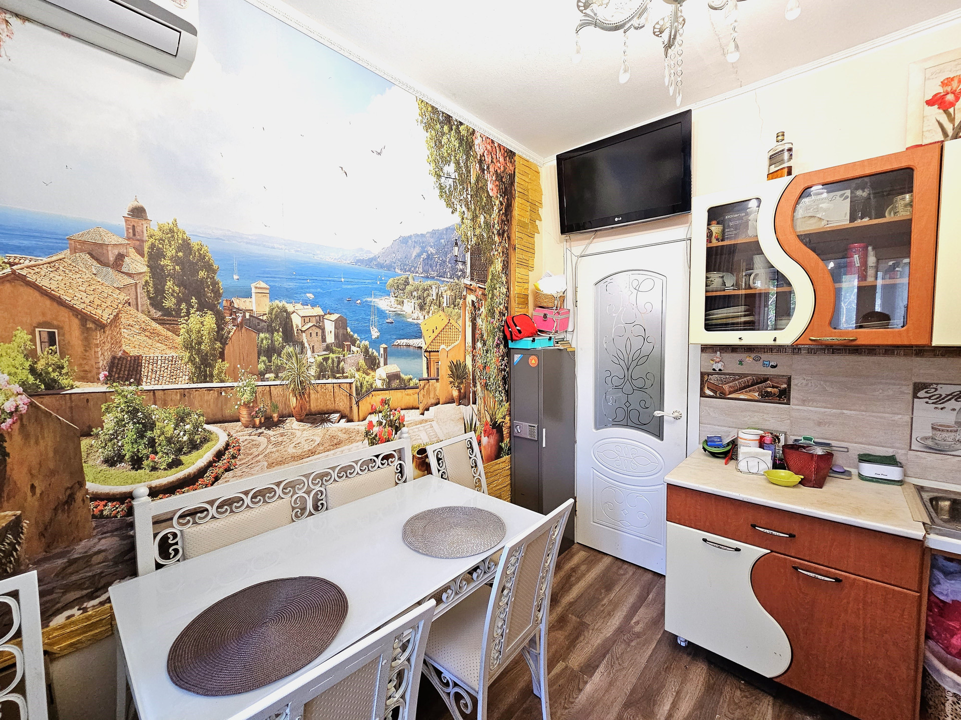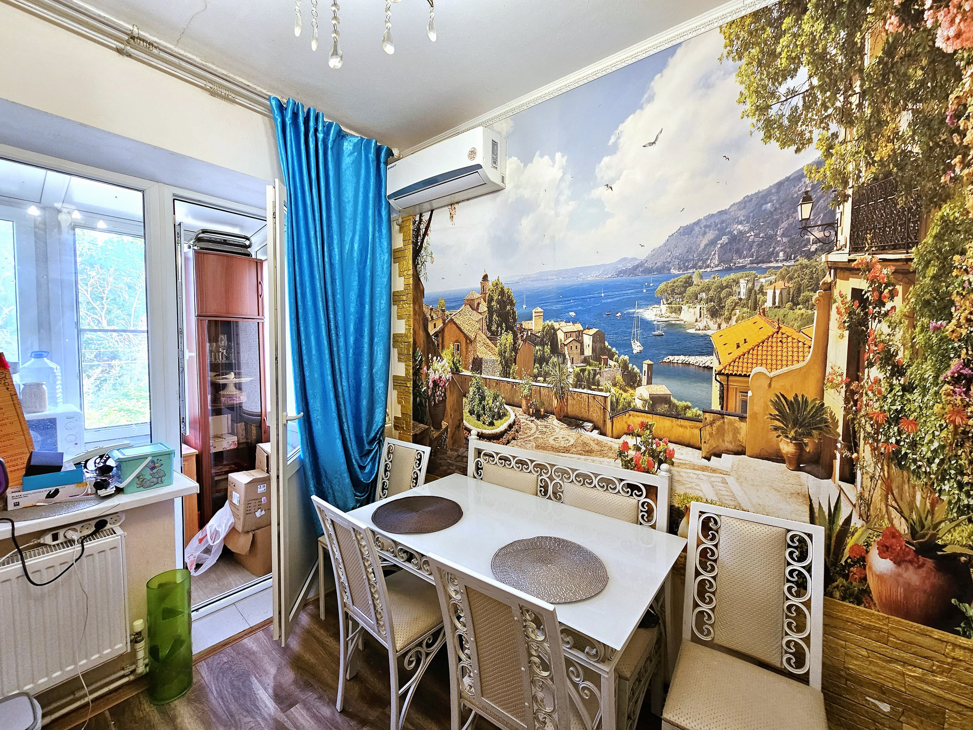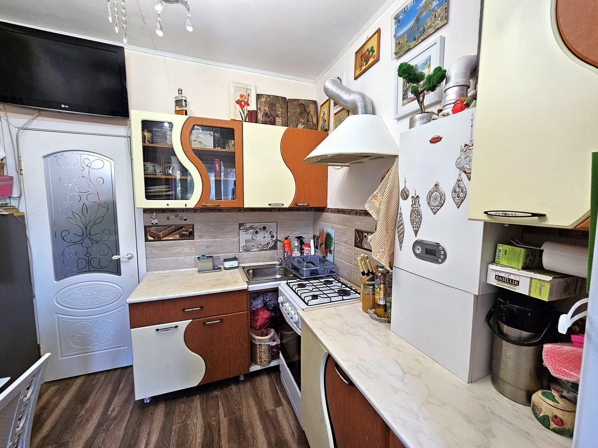 - На кухне кухонный гарнитур, вытяжка, двухконтурный котел, газовая плита, новый ламинат и радиаторы отопления. Выход на балкон