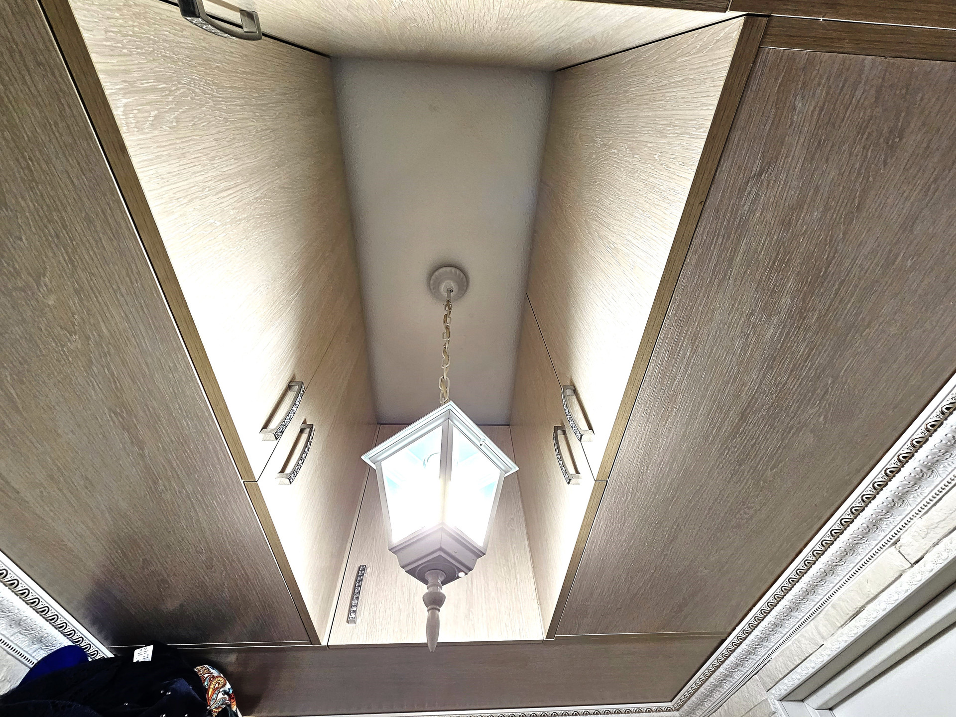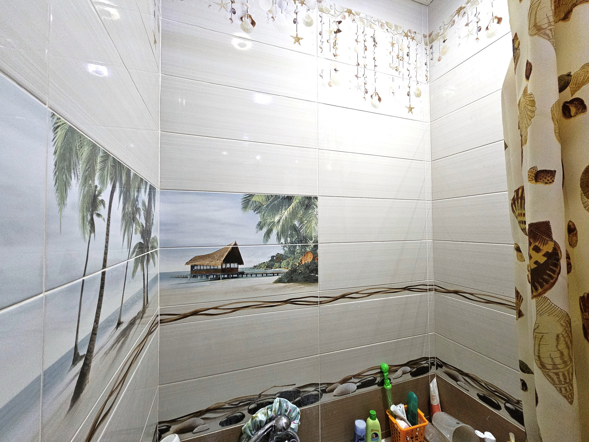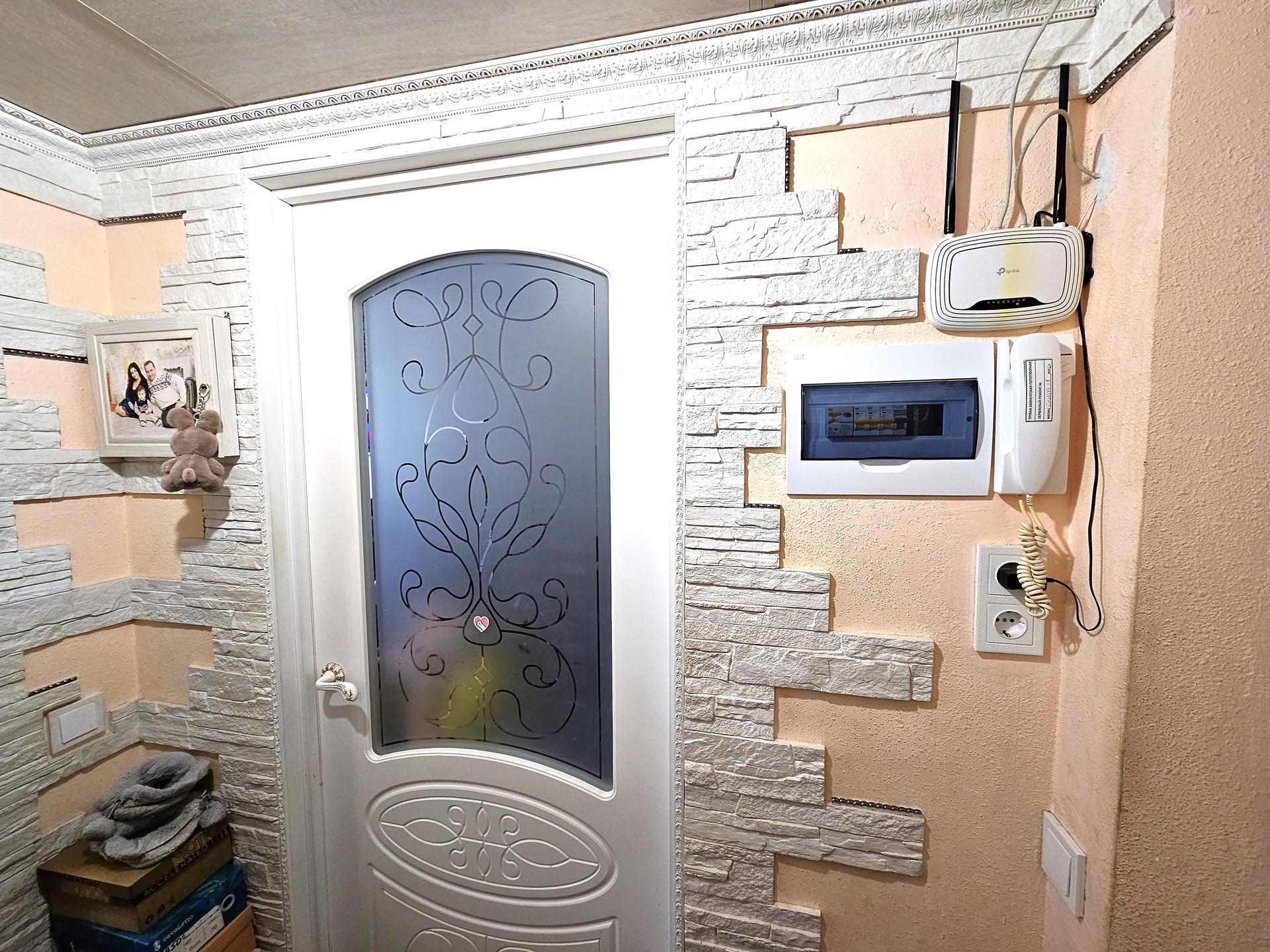 - В коридоре декоративная плитка, удобные нише для хранения вещей.