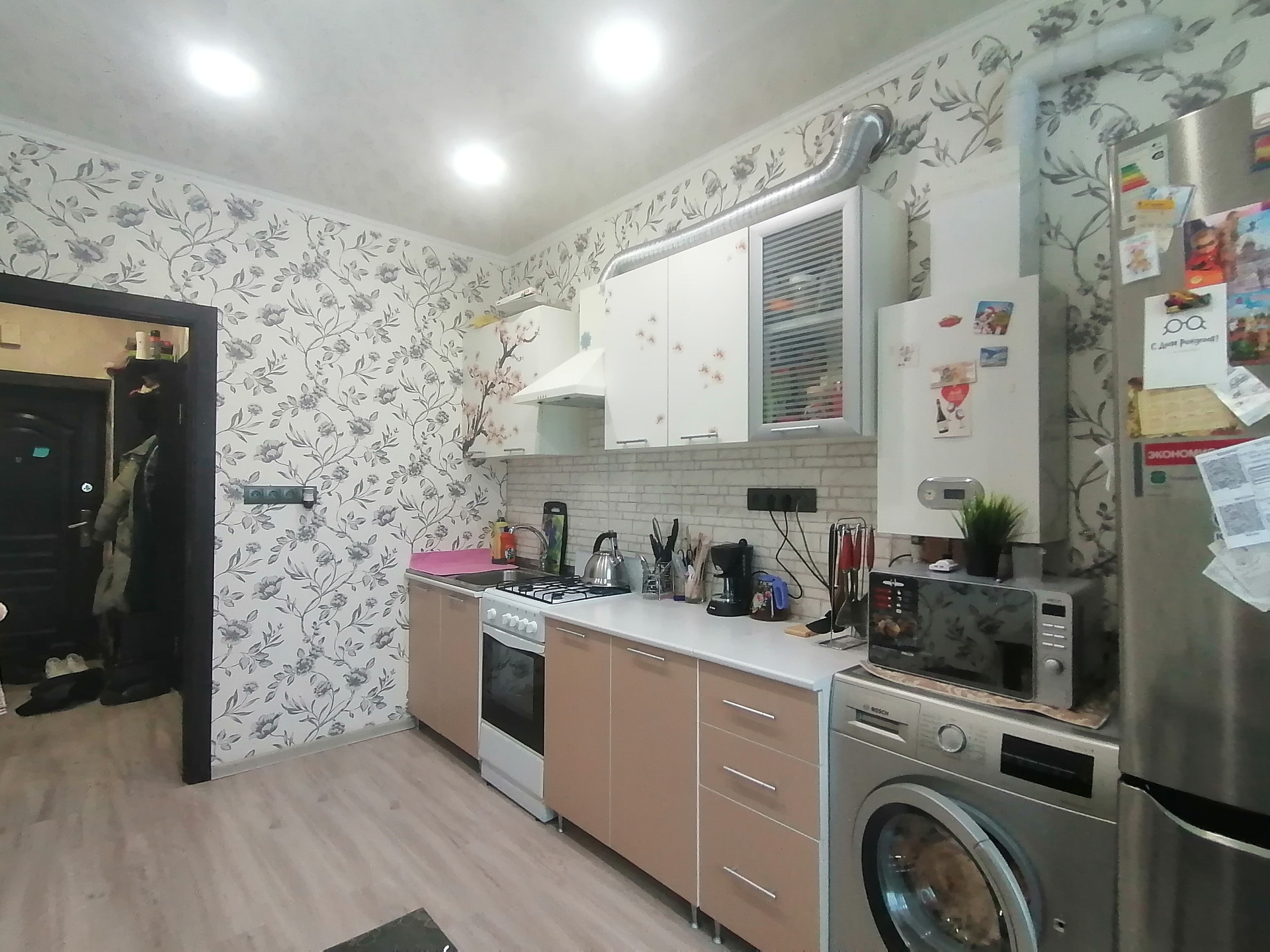 - Остается встроенная кухня, большой шкаф-купе.