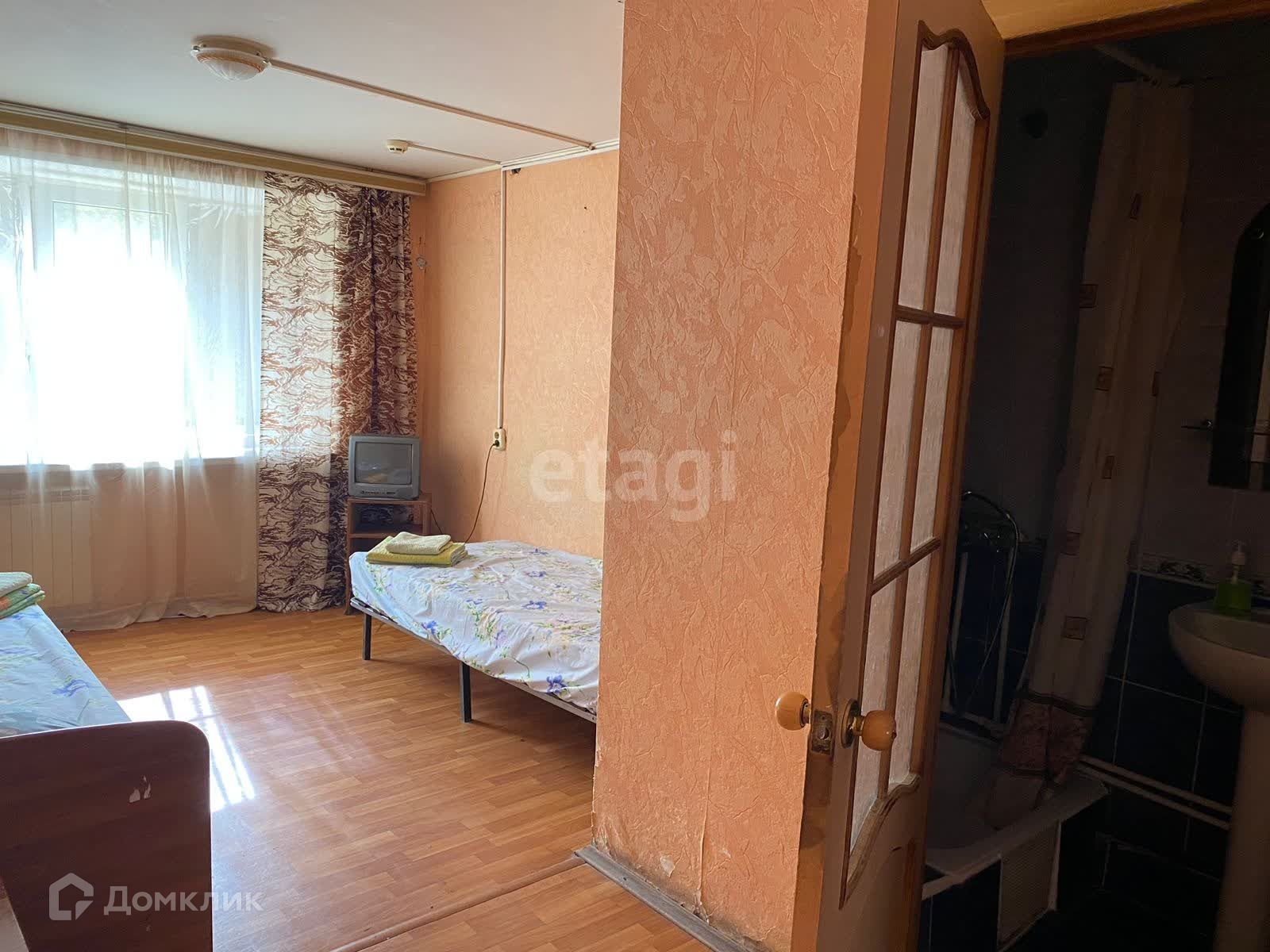 Дом мотельного типа. Площадь комнаты 16,8 метров квадратных, жилое состояние, свой санузел, мебель остается при продаже. Низкие коммунальные платежи, своё ТСЖ. Второй этаж пятиэтажного дома.