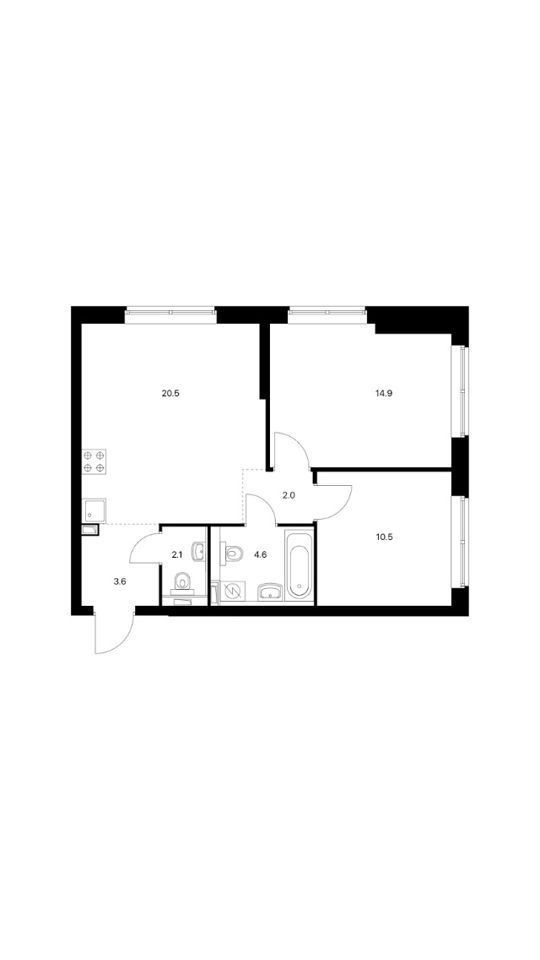Удобная функциональная планировка квартиры ,общей площадью 60 м2