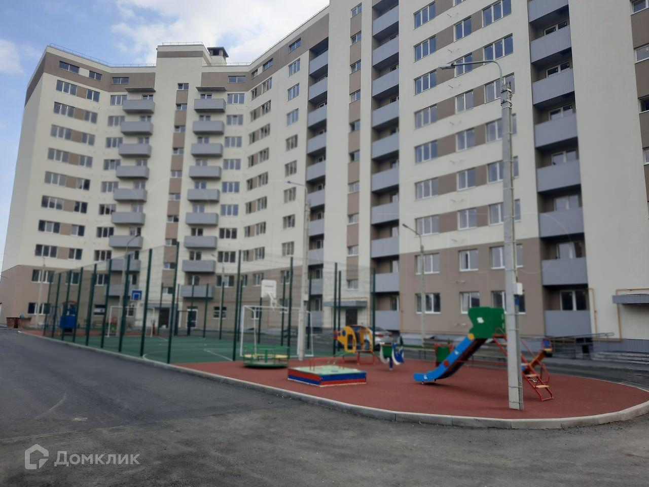 Детская и спортивные площадки во дворе.