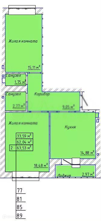 Общая площадь 65.1 м2