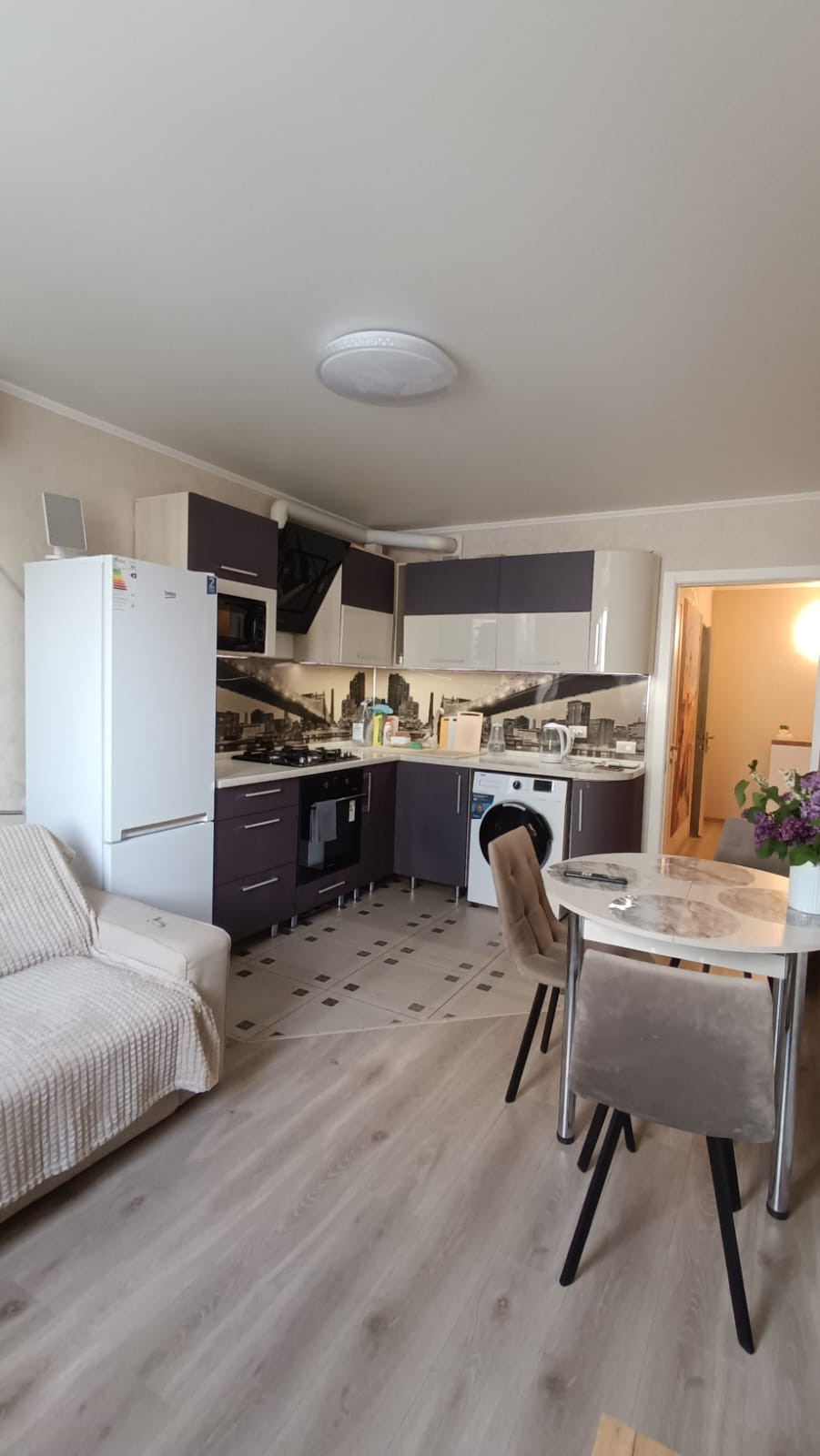 Квартира в идеальном состоянии, сделан качественный ремонт. Все счетчики установлены, батареи заменены, их можно регулировать, окна из металлопластика . Большая кухня - гостиная. Во всей квартире натяжные потолки, ламинат а также есть просторный балкон застеклен, внутри обшит, пол плитка . С/у раздельный, в качественной плитке в ванной комнате пол с подогревом . Квартира в отличном состоянии - сделан качественный ремонт из дорогих материалов. Полностью укомплектована мебелью и бытовой техникой и готова к проживанию. Квартира светлая и теплая, в комнатах остается вся мебель.