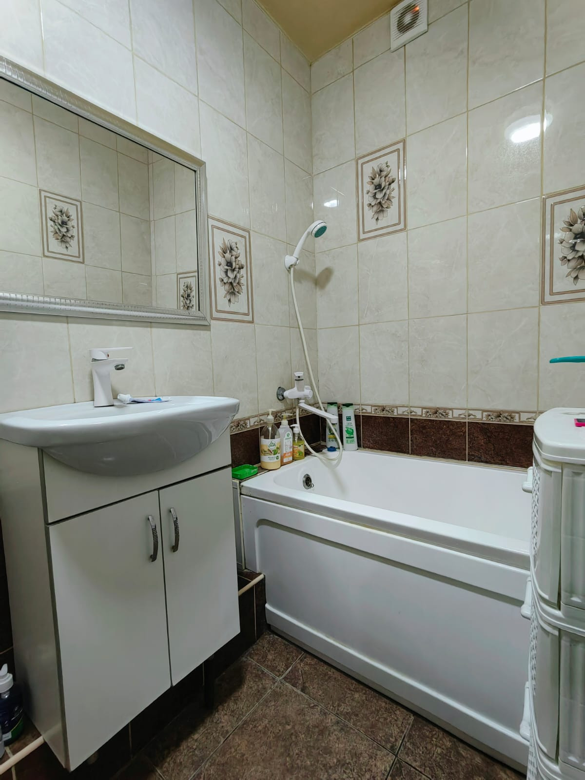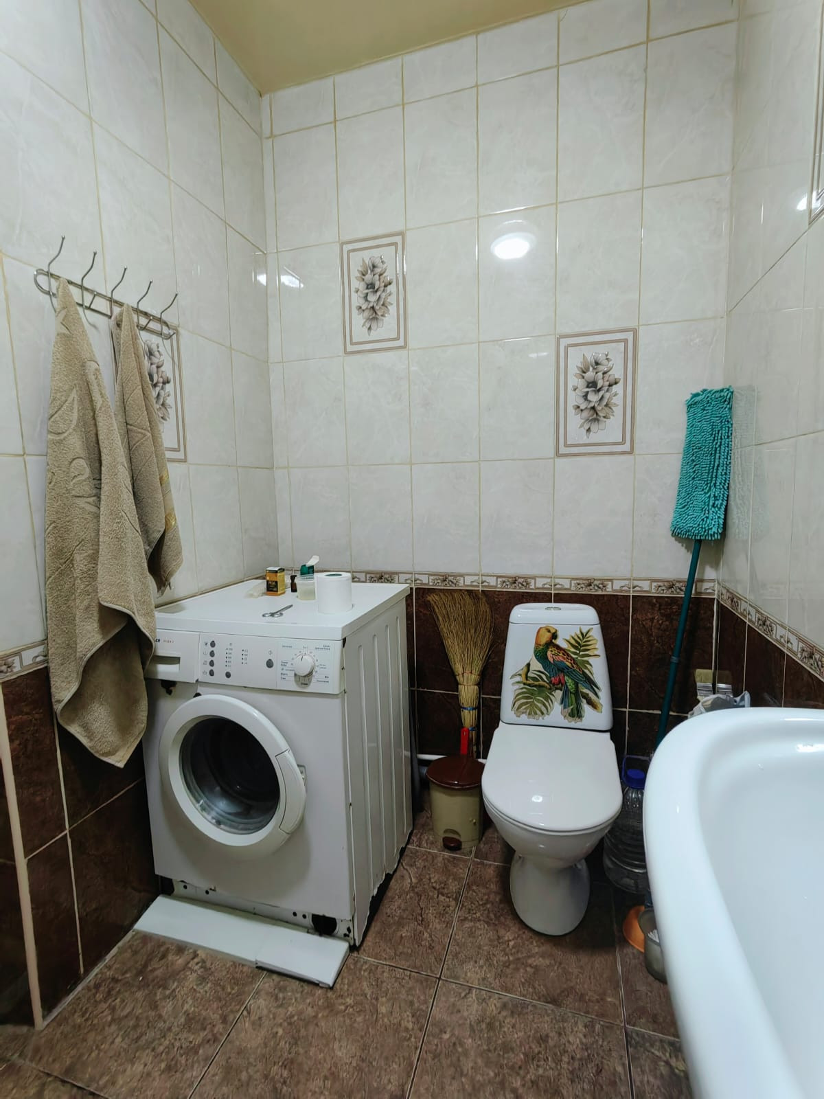 Санузел совместный выложен плиткой, водопроводные трубы заменены на пластик, счетчики