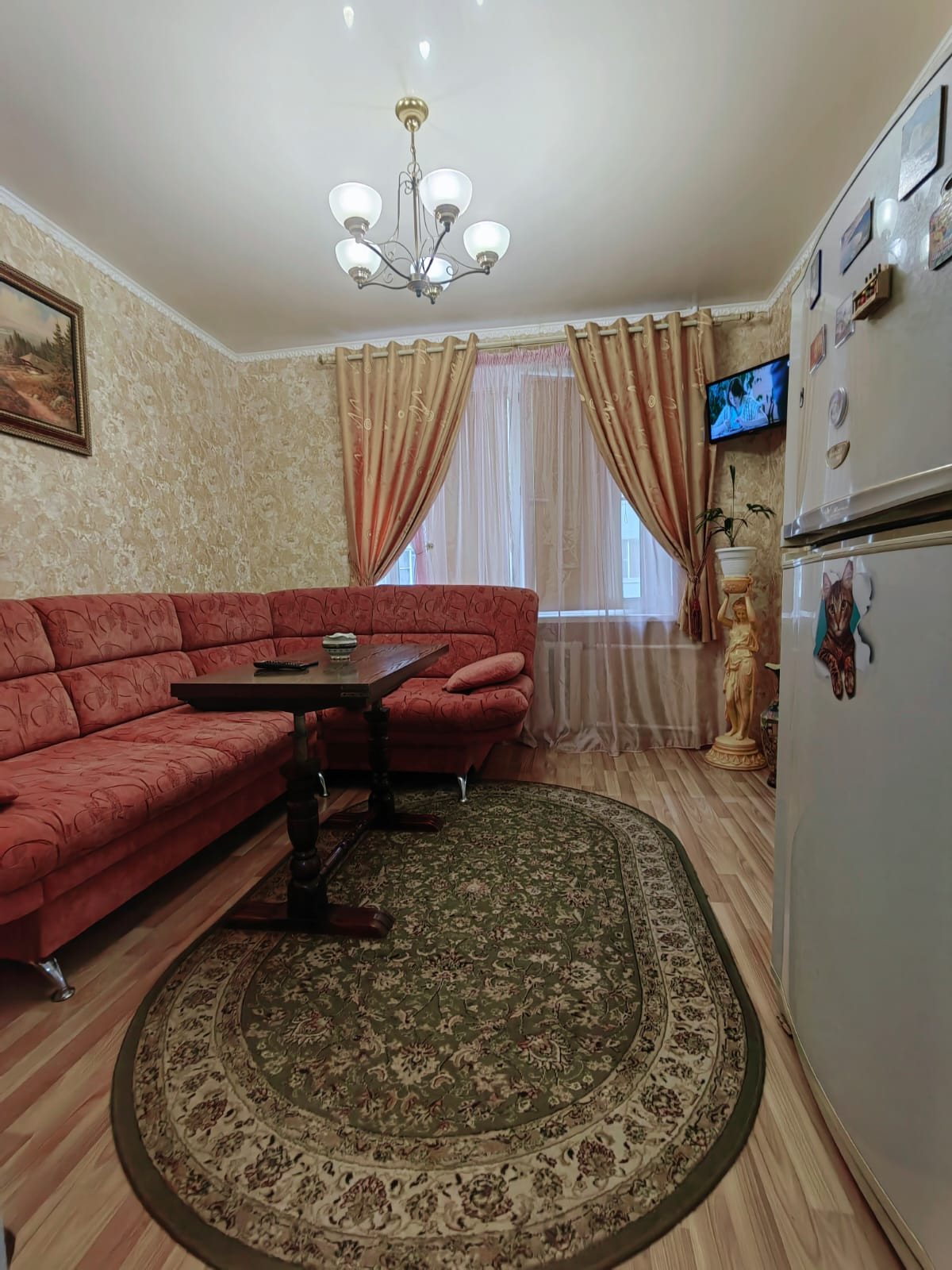 Просторная кухня-гостиная поделенная на зоны-15 метров, остается кухонная мебель
