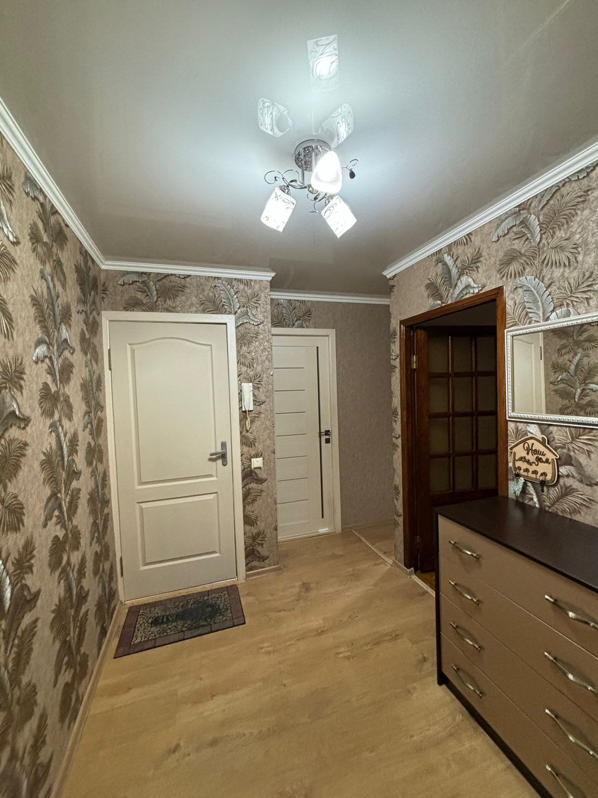 В квартире был сделан косметический ремонт: выровняли стены, установили МПО, сделали стяжку пола, в ванной комнате гидроизоляция, поменяли сан.технику, сделали новую разводку воды с установкой фильтра, поменяли эл. проводку и т.д.