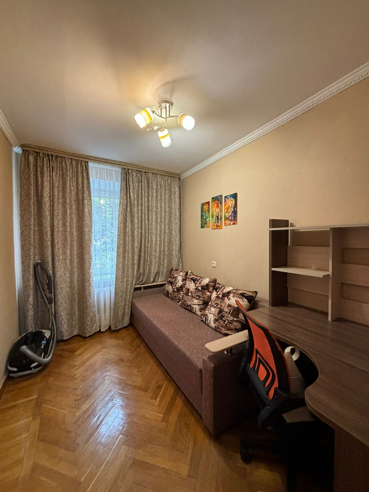 Комнаты 2+1, большой совместный сан.узел., просторная прихожая, есть балкон. Частично остается мебель и техника. Квартира светлая и очень теплая!!! Дом после капитального ремонта, тихий зеленый двор.
