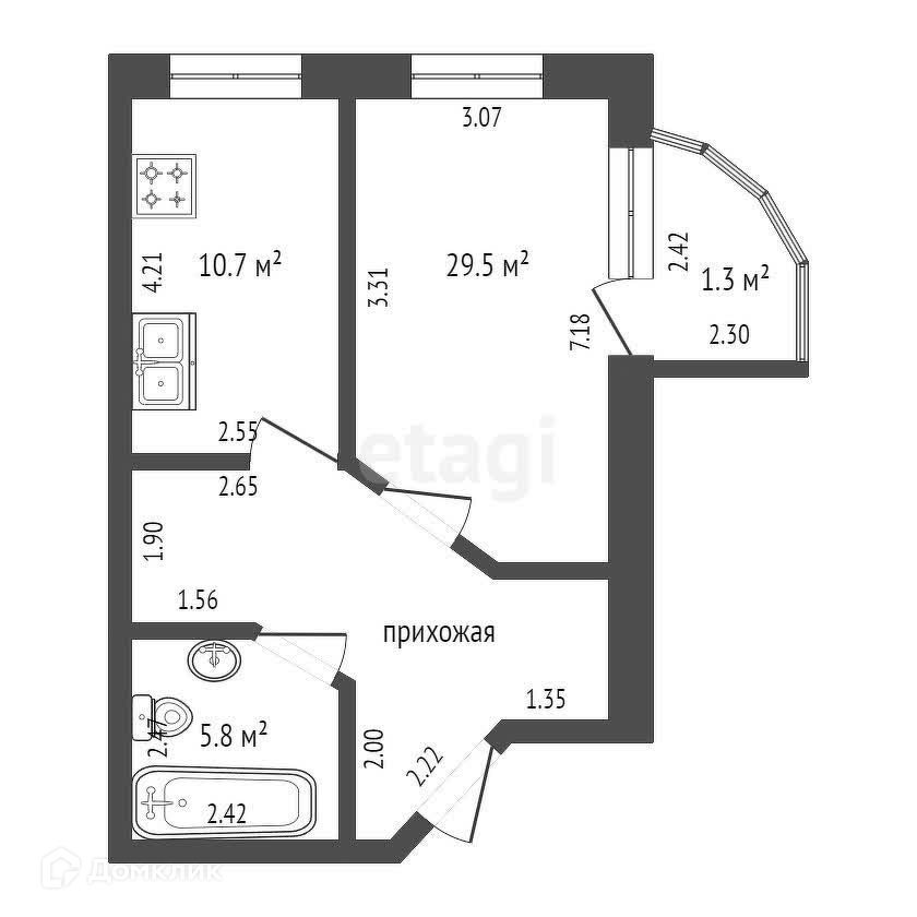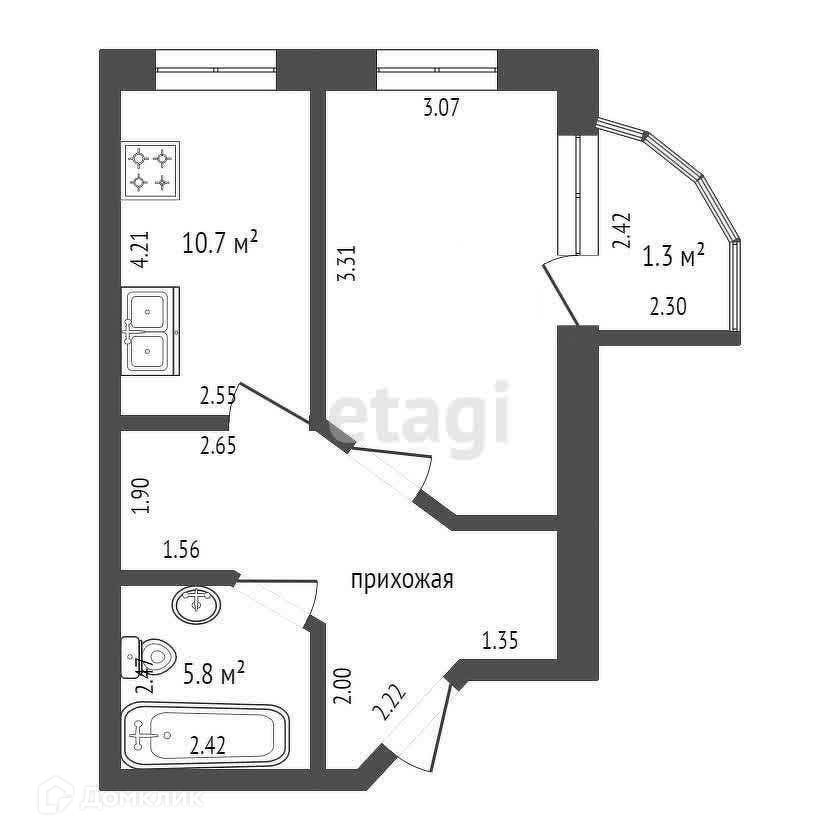 Площадь кухни 10.7 м2