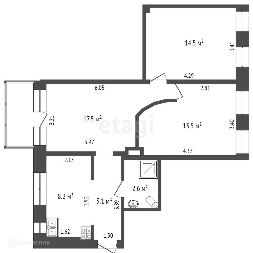 Общая площадь 61.4 м2