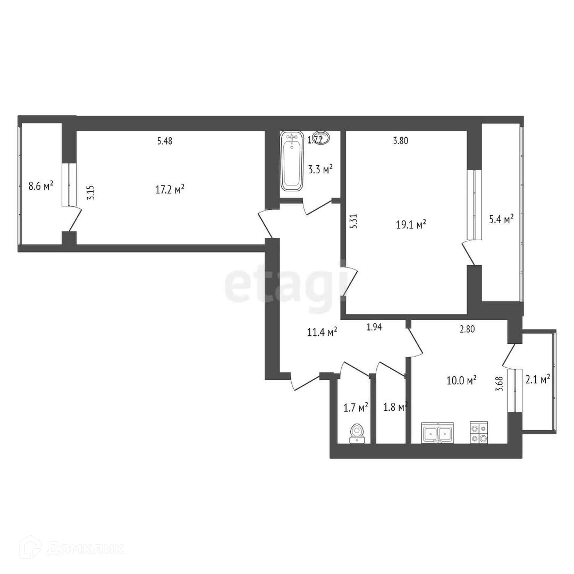 Общая площадь 75.6 м2