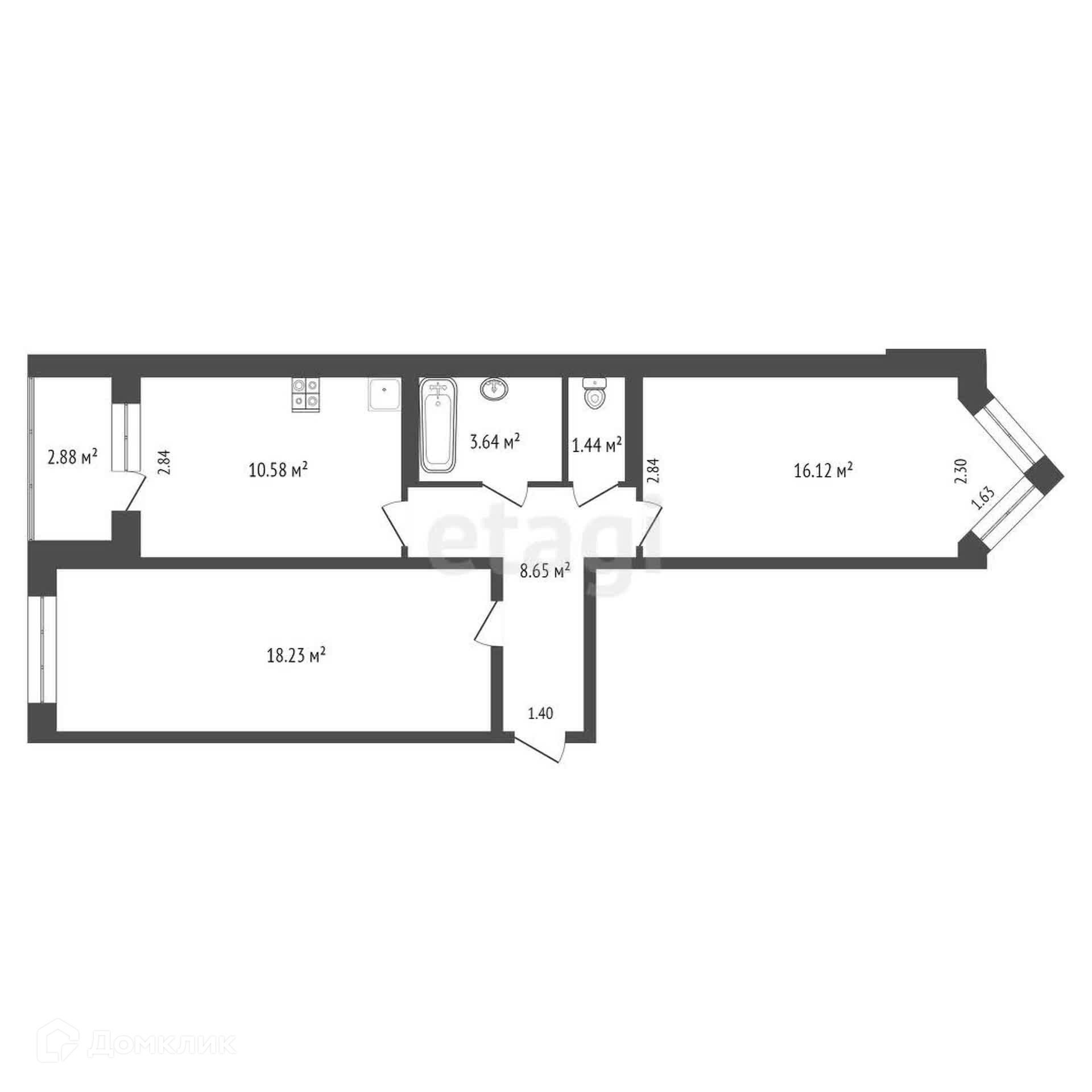 Общая площадь 59 м2