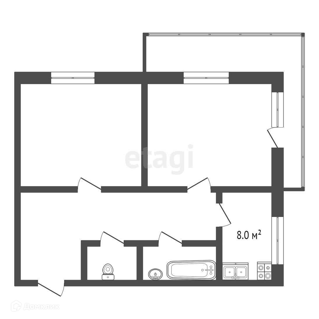 2-комнатная квартира, 48.2 м2, этаж 12 / 14, на продажу в Таганроге, улица Сызранова, 12