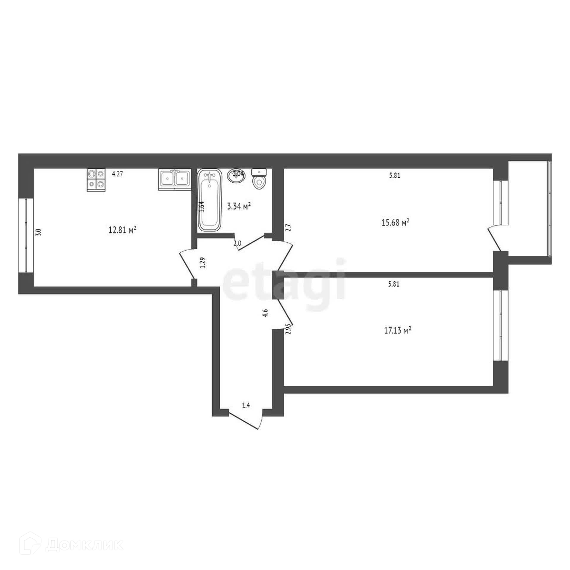 Общая площадь 56.1 м2