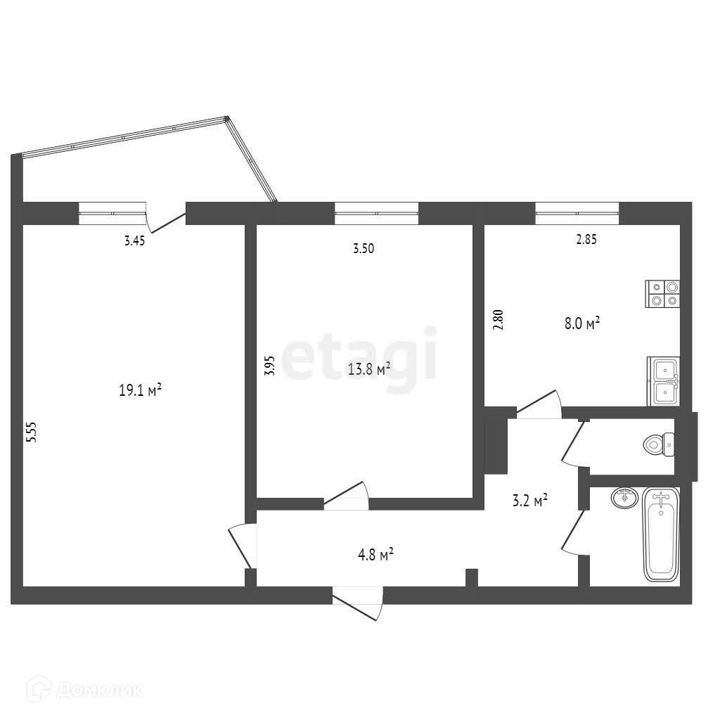 Общая площадь 62.2 м2
