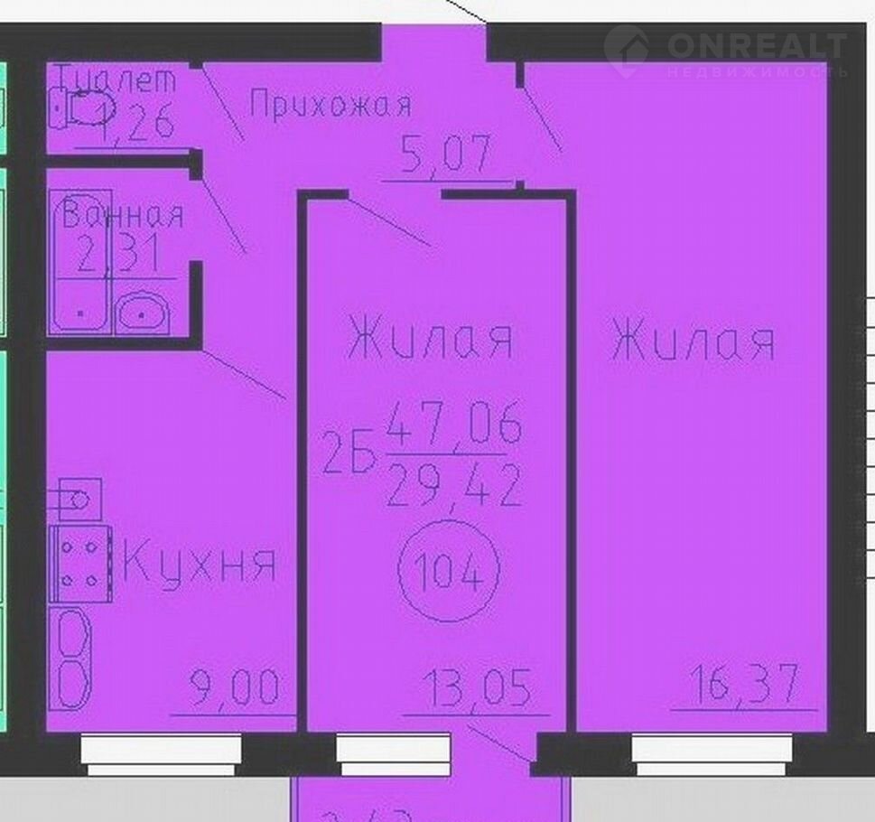 - жилая площадь 29,42 кв. м.;