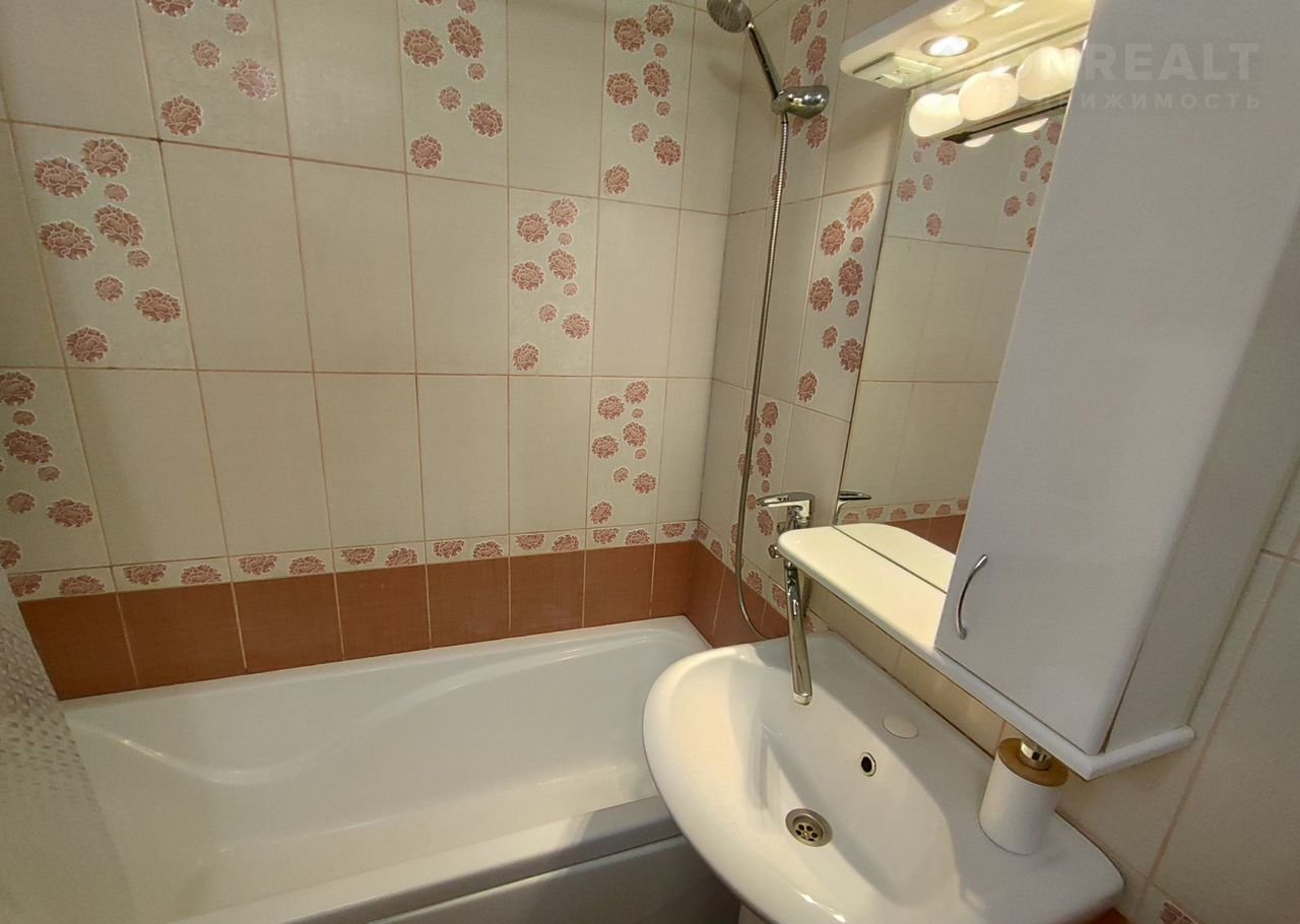 Окна и лоджия металлопластик. На стенах обои. Потолки навесные, точечное освещение. В кухне и коридоре на полу плитка. В комнате на полу ламинат. Санузел совмещенный, на стенах и на полу плитка.
