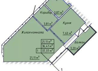 1-комнатная квартира на продажу, 38.4 м2, 1-я Котельная улица, 67