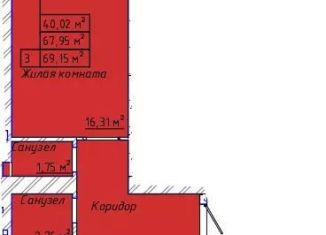 Продажа 3-комнатной квартиры, 70.2 м2, 1-я Котельная улица, 67