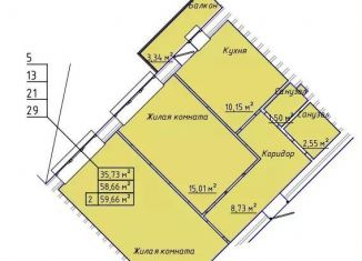 Продаю двухкомнатную квартиру, 59.2 м2, 1-я Котельная улица, 67
