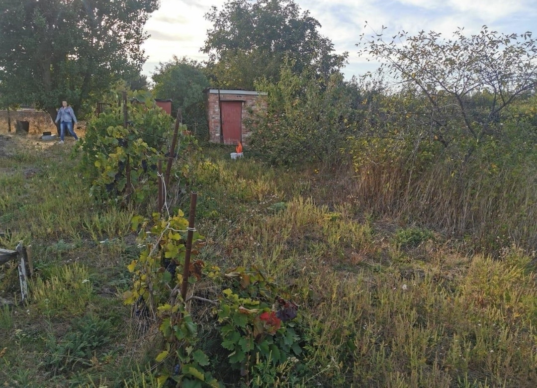 Продам угловой участок Снт Тополь 9 аллея, огороженный, есть бак для воды, небольшой сарайчик, деревья груша, яблоня, слива, виноград разных сортов, чёрная смородина