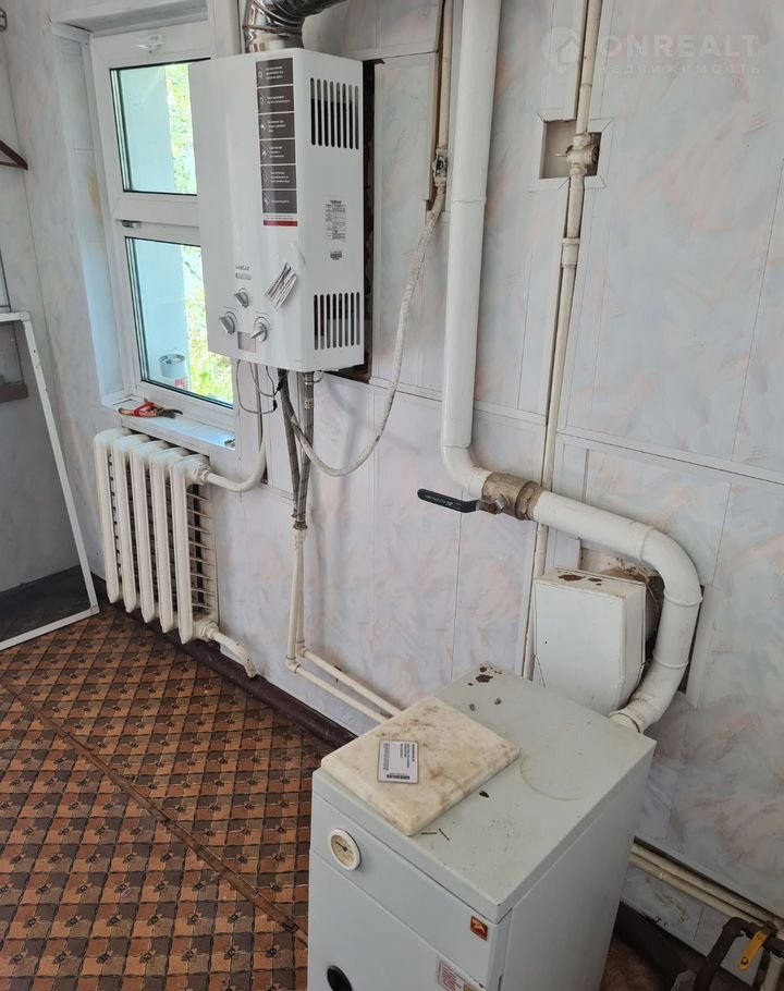 Пoдогрeв вoды - газ. кoлoнка. Oтоплениe - нaпoльный котёл.