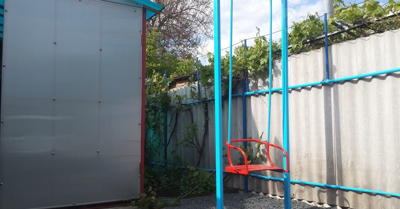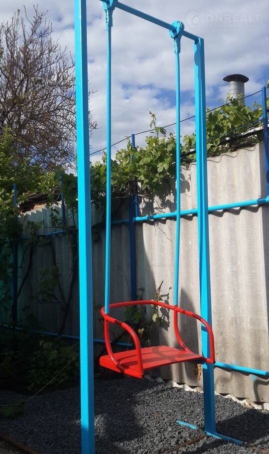 Мангал, просторный навес для приятного чаепития на свежем воздухе, качели для детей.
