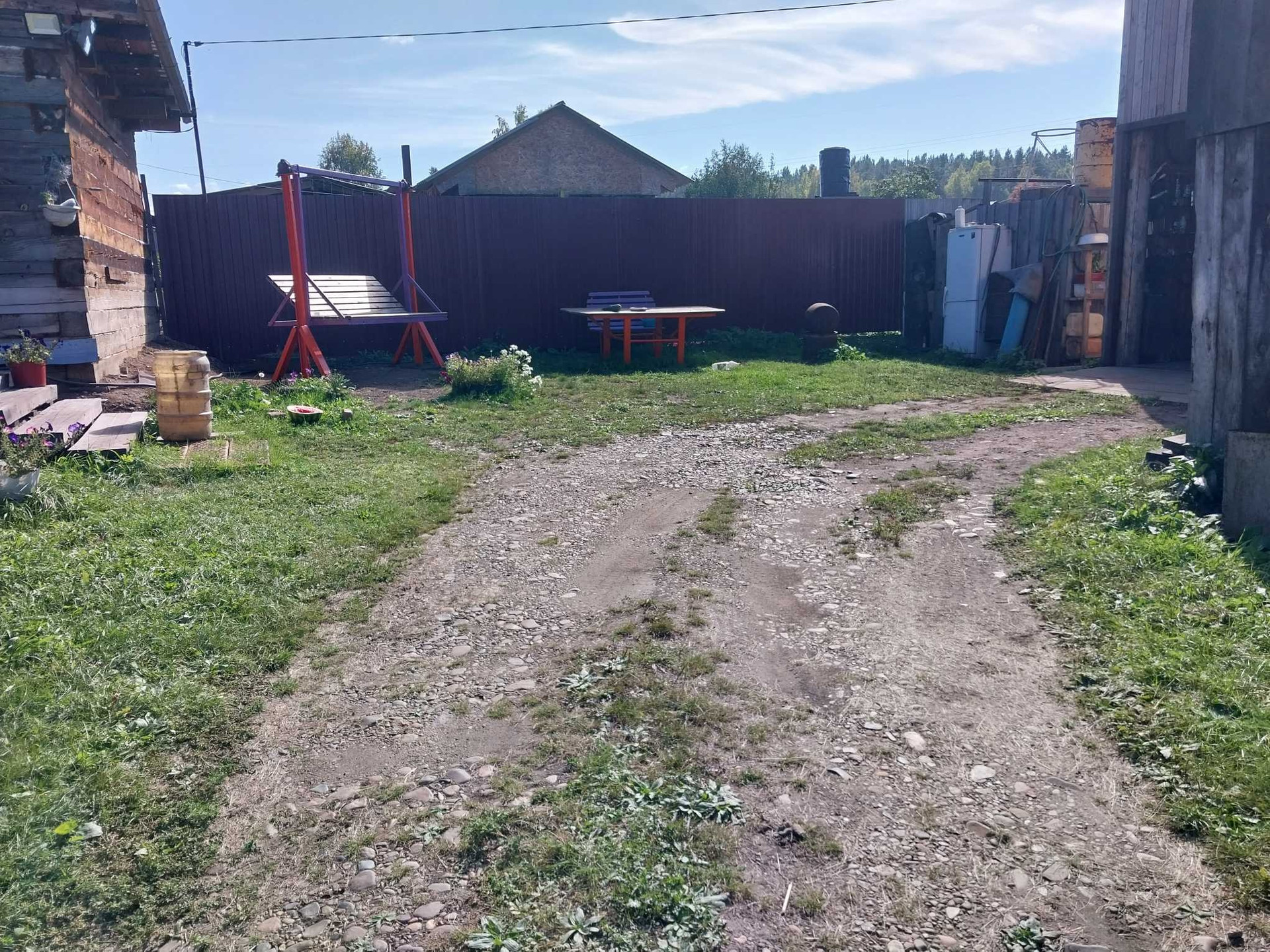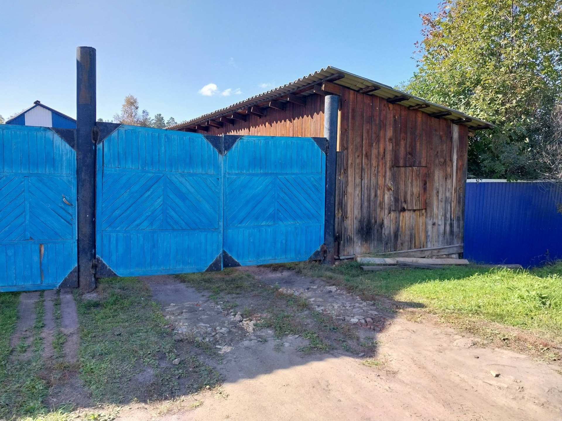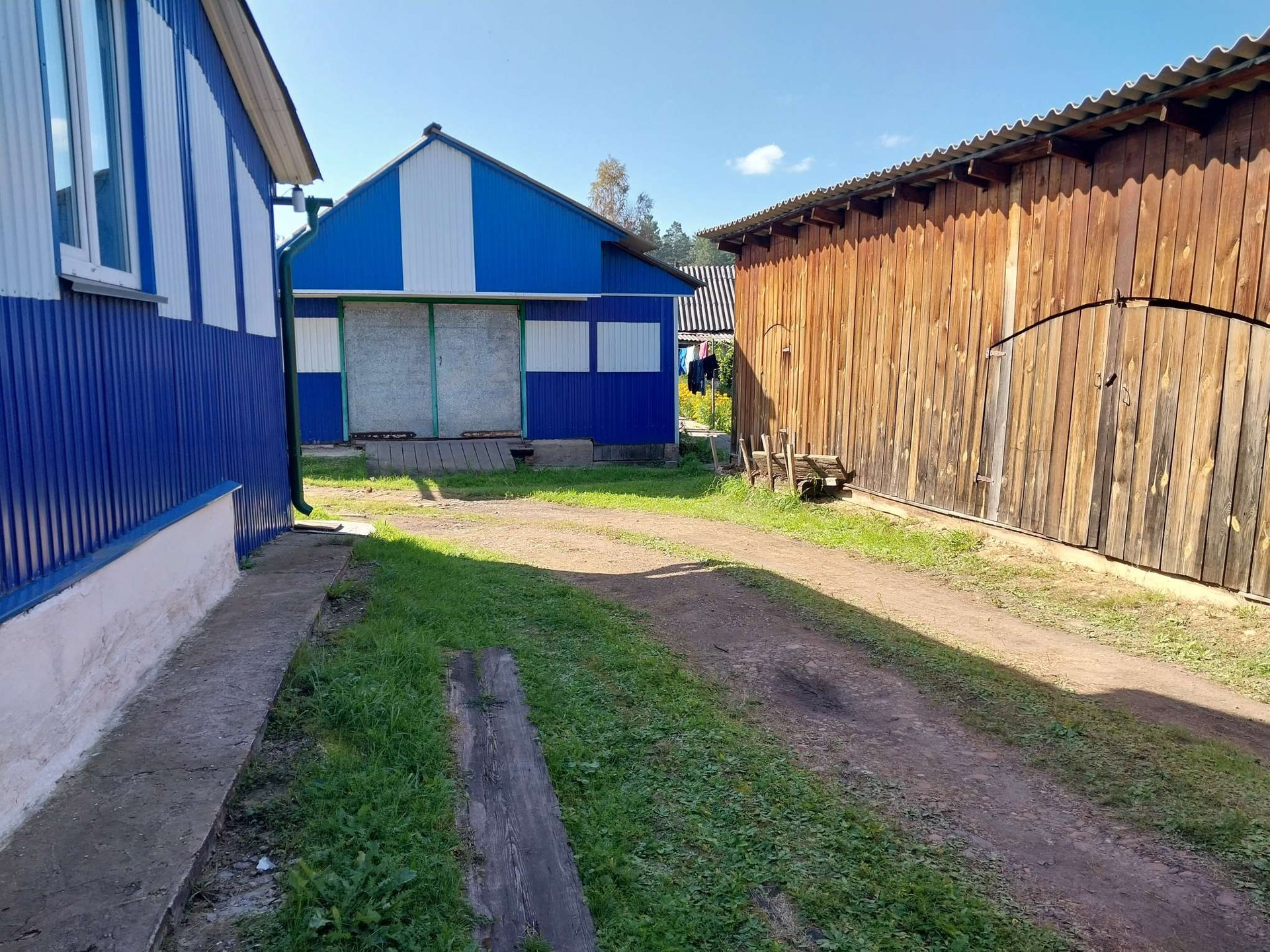 На территории большой гараж с террасой. Большая стайка для круглогодичного содержания.