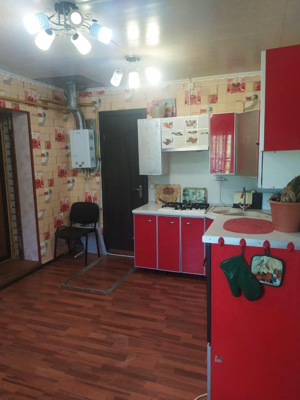 Дом выполнен преимущественно из бруса, кухня – из кирпича.