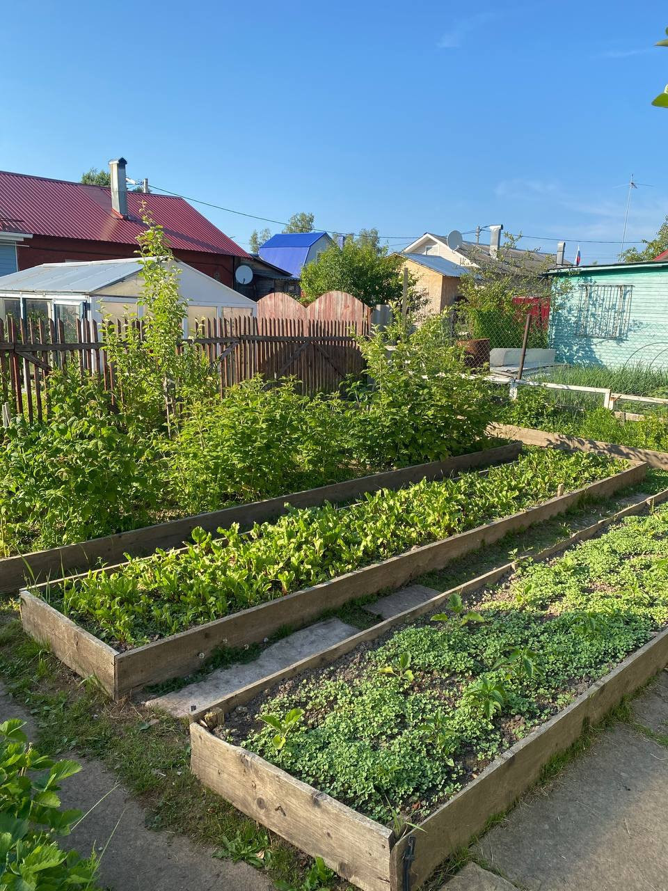 Полностью облагорожен огород( деревянные грядки, теплица 3*6 так же с деревянными грядками, 4 грядки клубники)