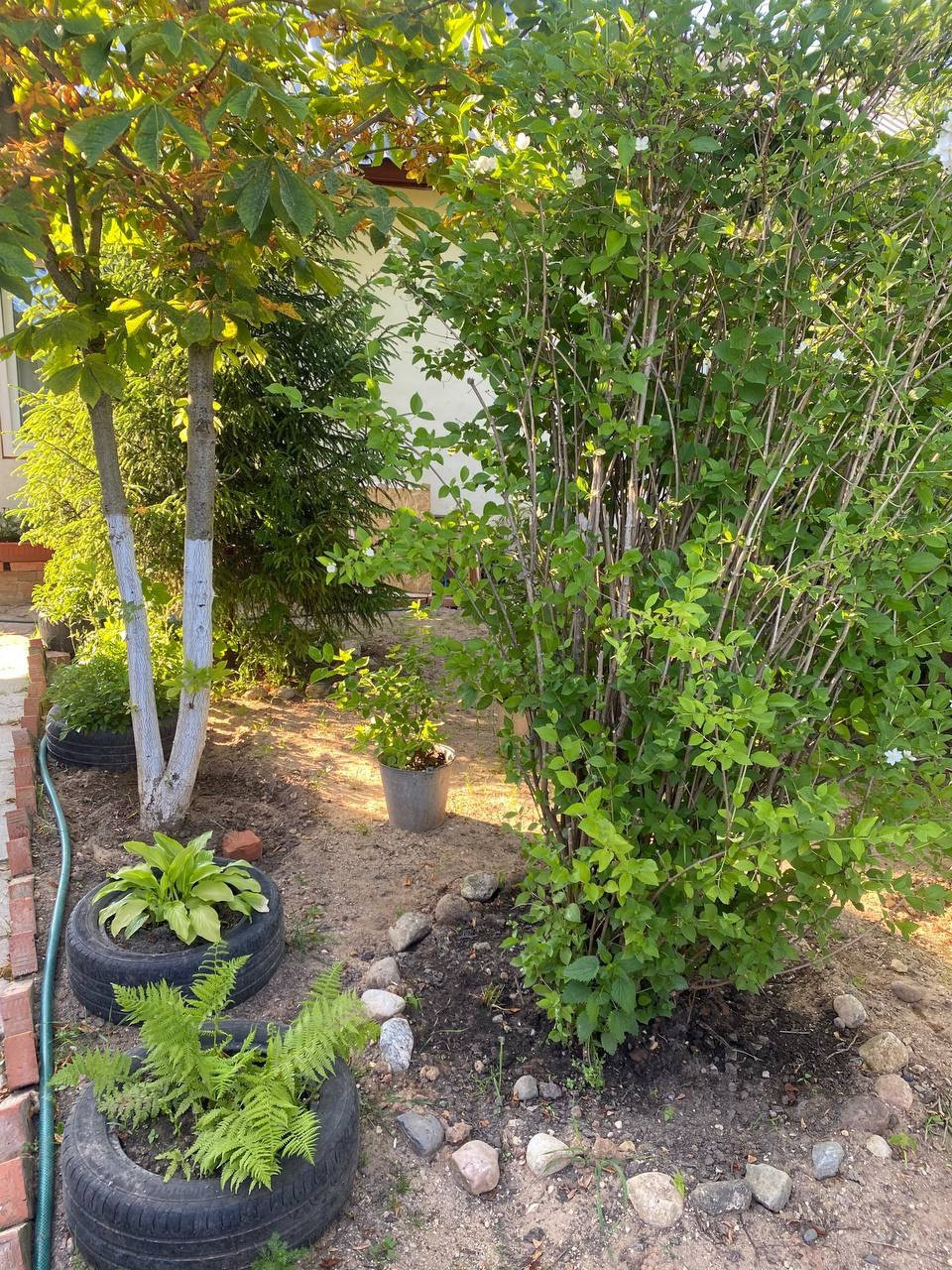 Перед домом ели, каштан, липа, жасмин, благоустроенный цветник( пионы, нарциссы, тюльпаны, флоксы и др.)