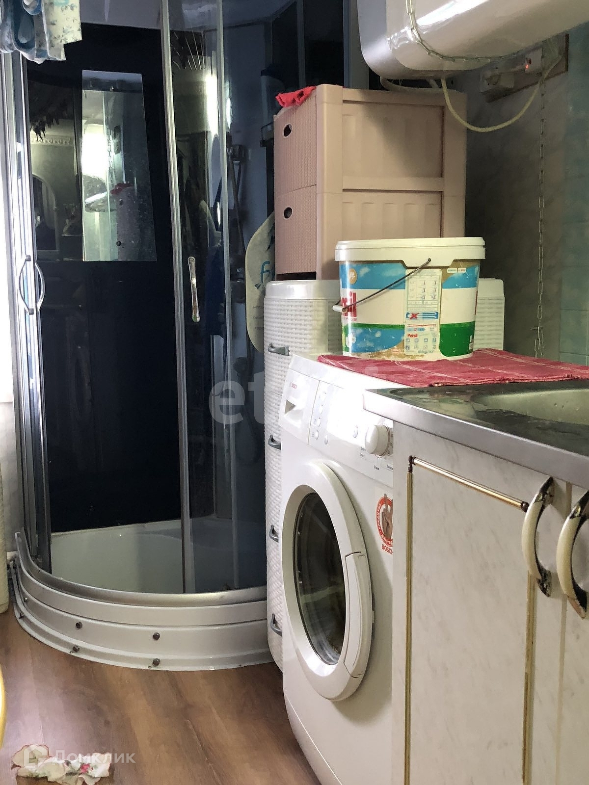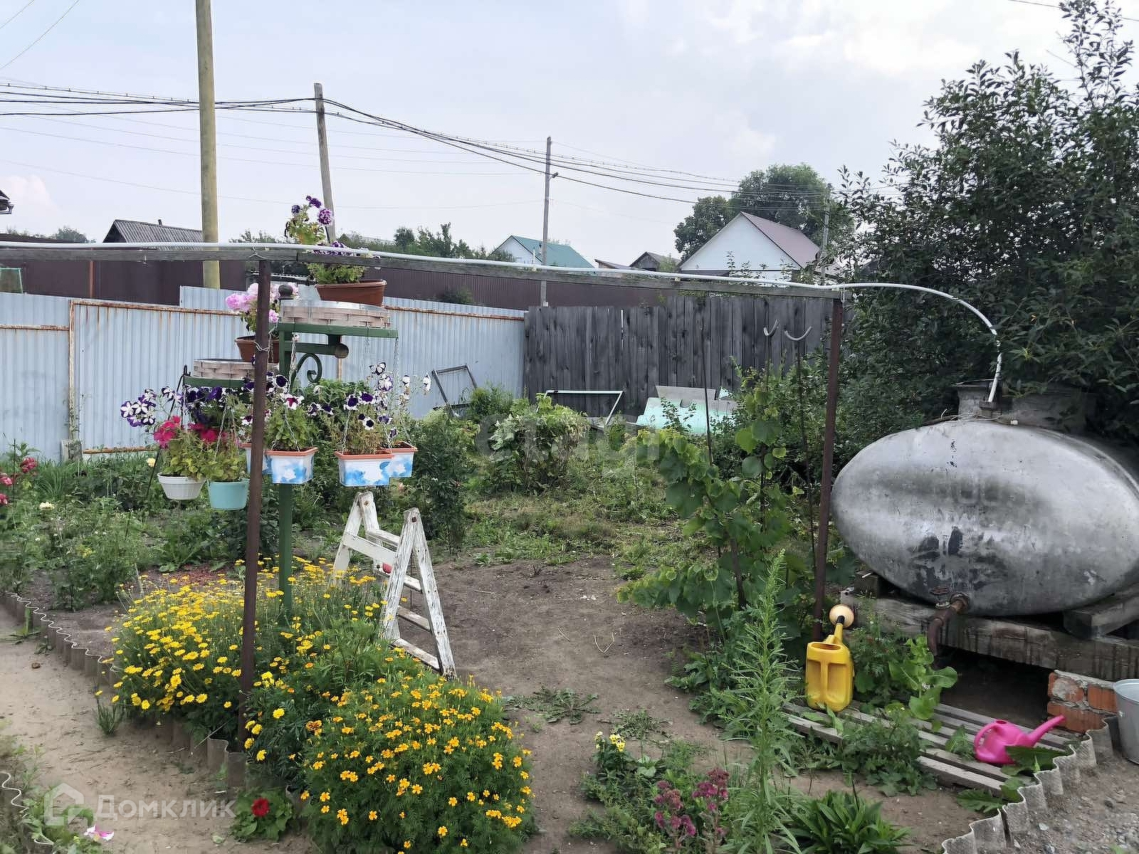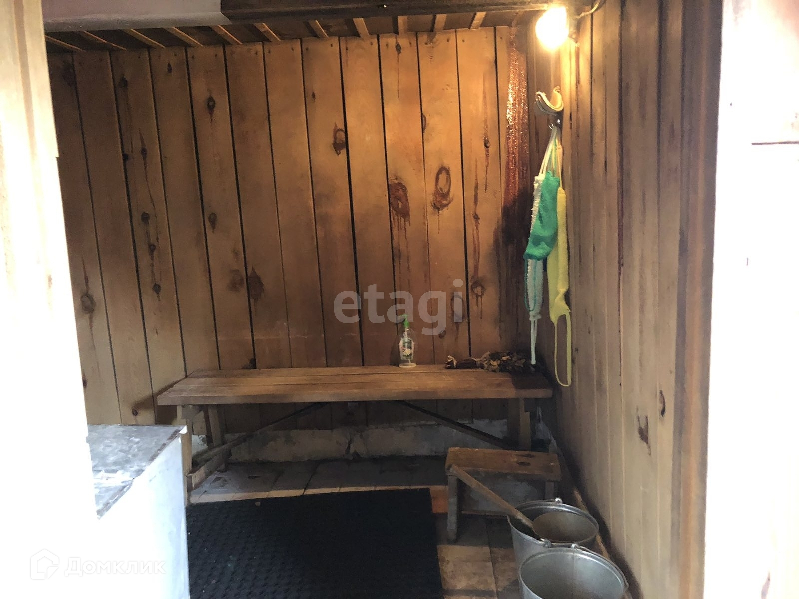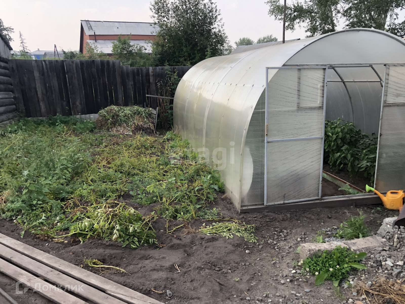 Дом построен из бревна и обшит сайдингом, по периметру участка огорожен профнастилом. В самом доме на 1 этаже расположена светлая кухня, санузел(совмещенный), а также