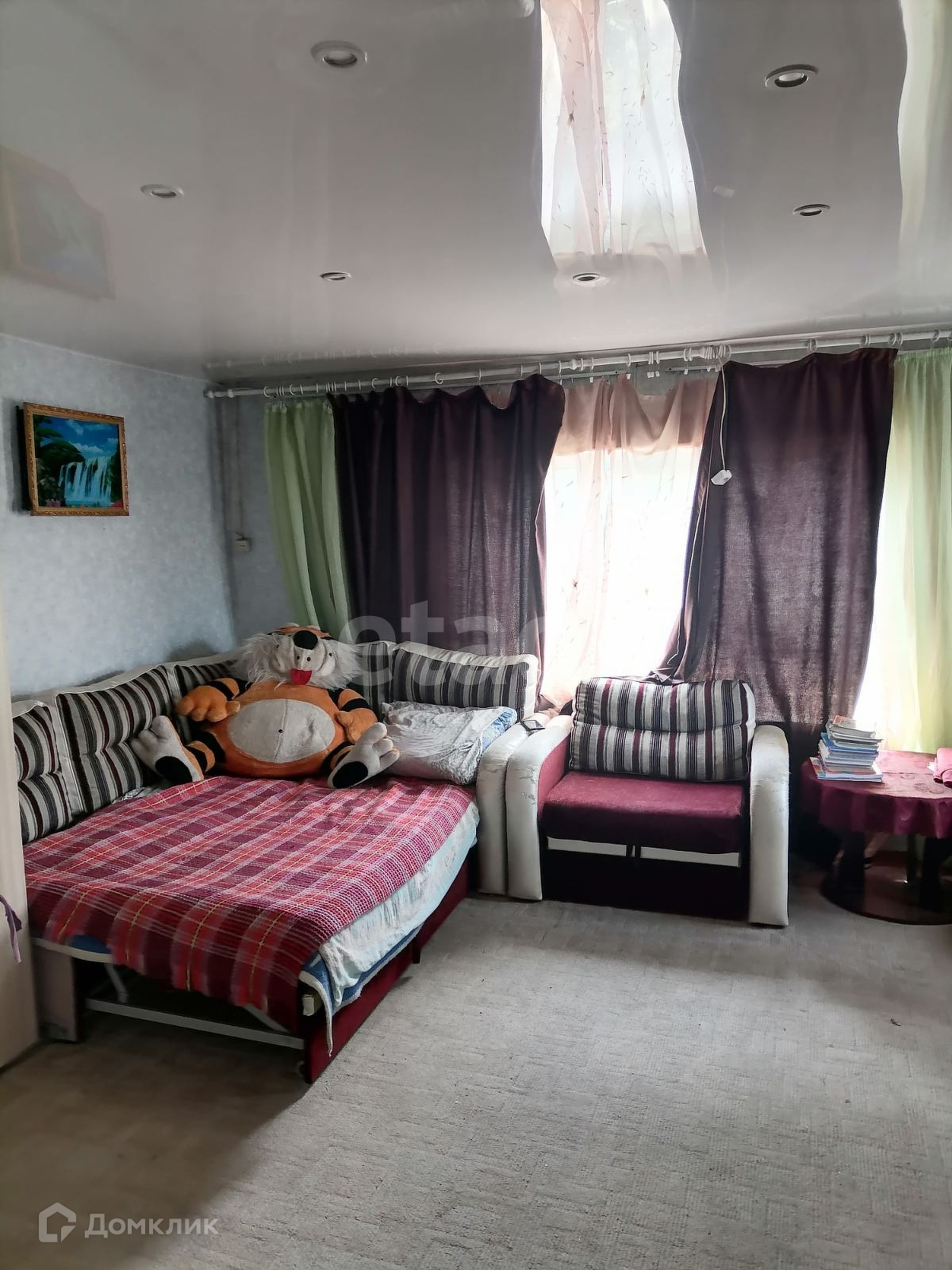 Дом из бревна 22см., пвх окна, полноценный большой санитарный узел, печное отопление, вода заведена. Две комнаты.