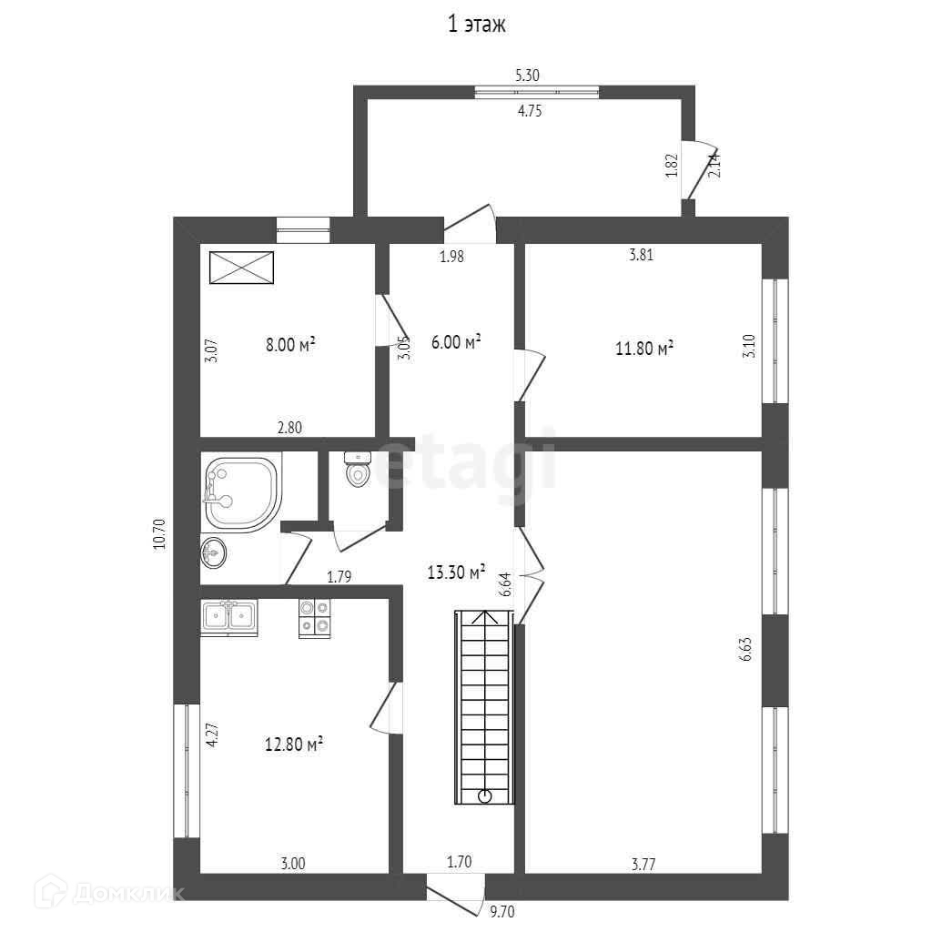 первый этаж — кухня 12,8 кв.м, , зал, детская комната, раздельный санитарный узел, котельная,
