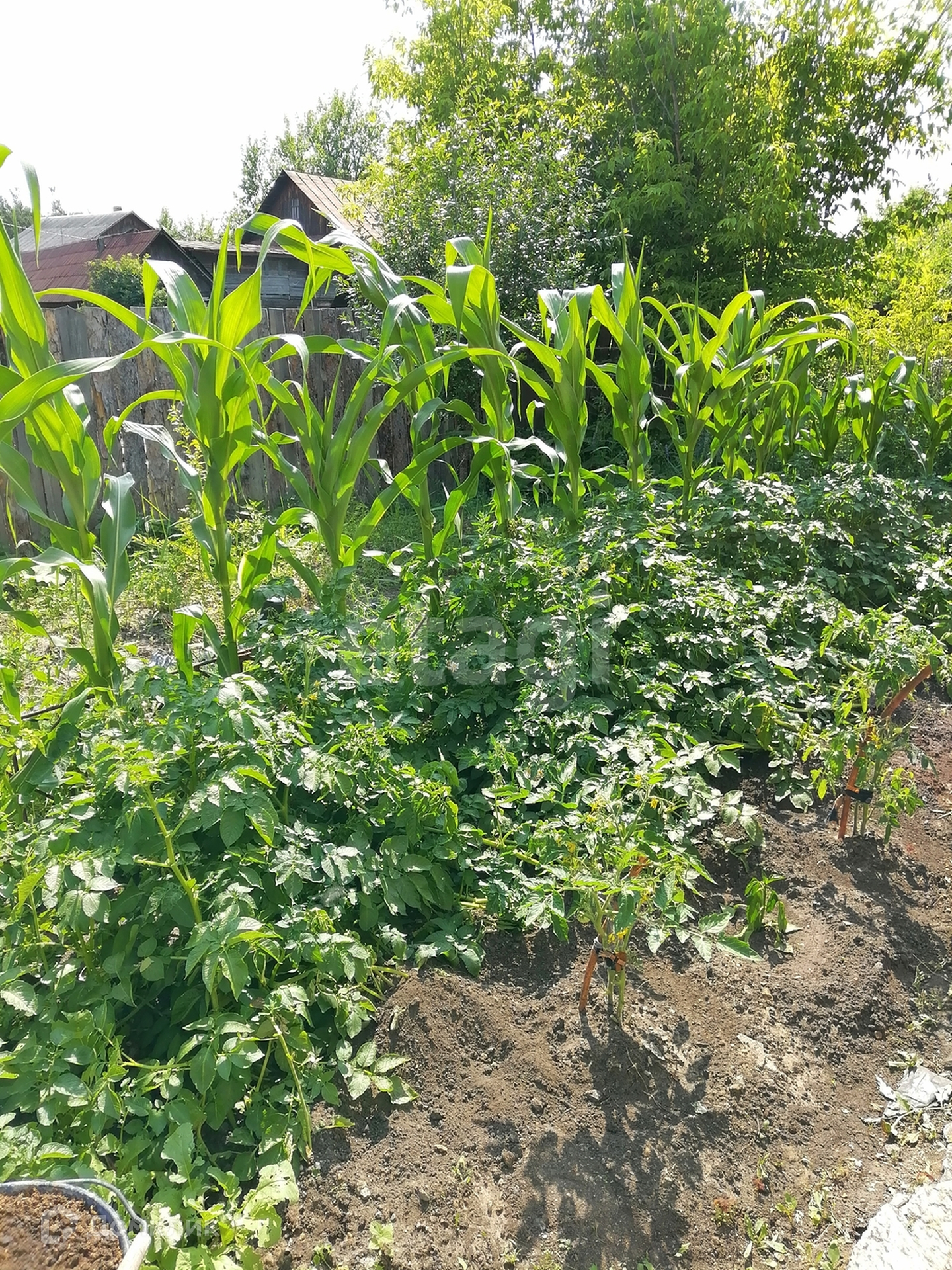 У дома имеется участок земли в собственности, где можно выращивать зелень и овощи, палисадник для цветов.