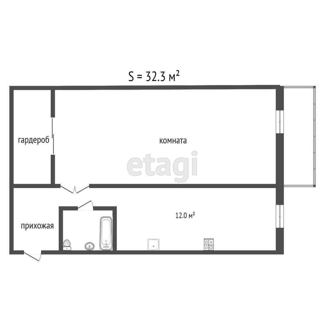 Общая площадь 32.3 м2