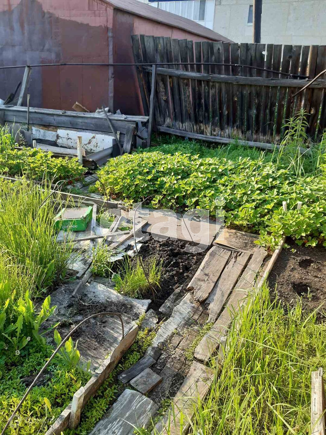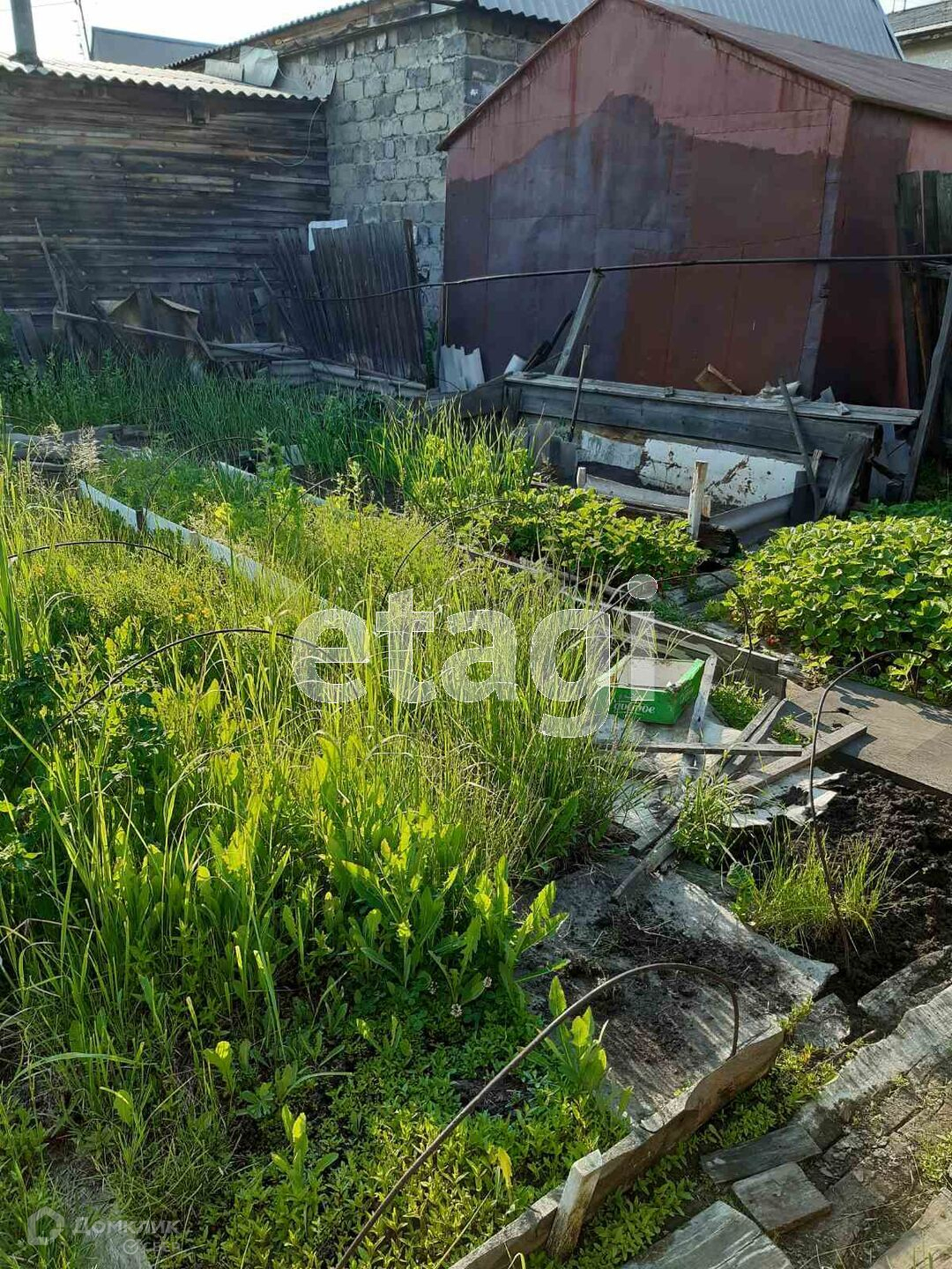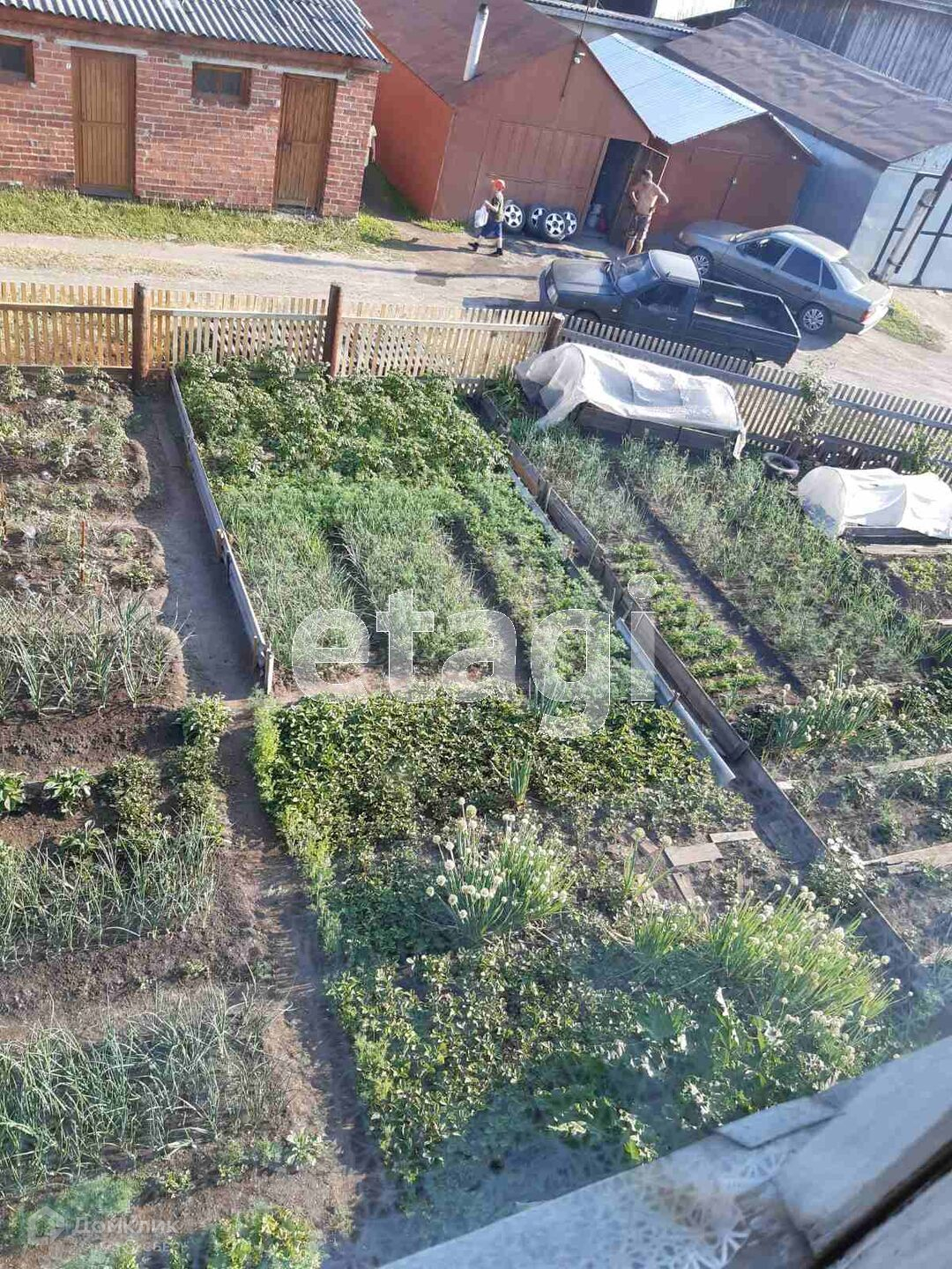 Во дворе под лоджией разработанный огород. Рядом расположен гараж, баня, конюшня, хозпостройки, курятник,участок огорожен забором. Торг уместен!!