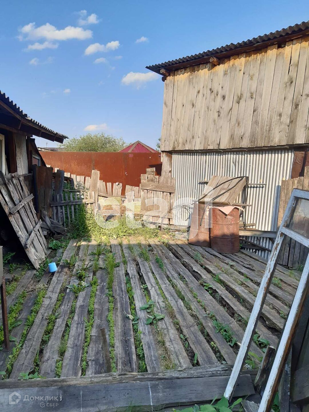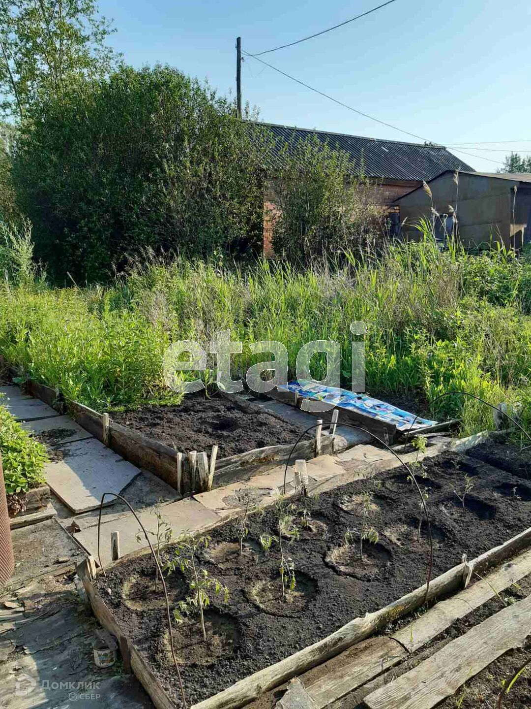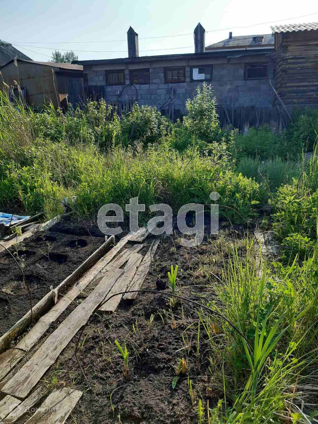 Во дворе под лоджией разработанный огород. Рядом расположен гараж, баня, конюшня, хозпостройки, курятник,участок огорожен забором. Торг уместен!!