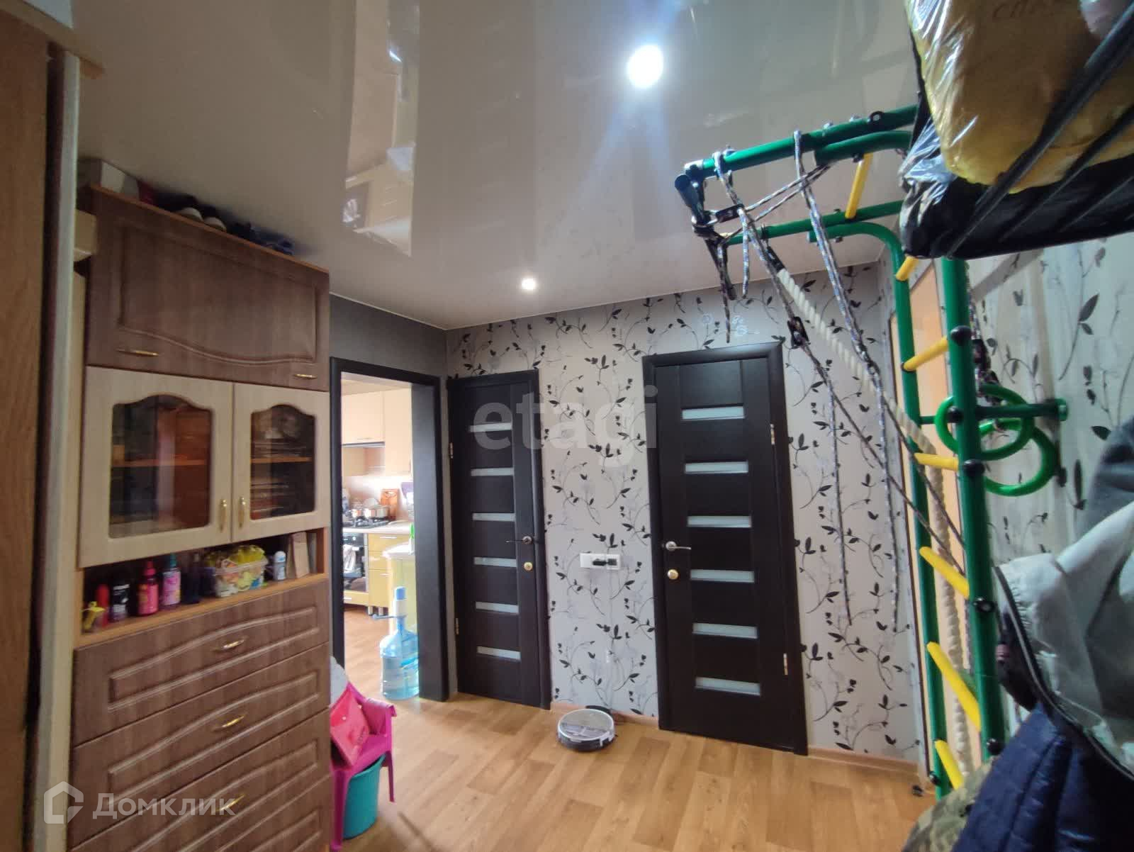 Квартира находится на пятом этаже пятиэтажного дома. В ней есть совмещенный санузел с душевой кабиной. Ремонт выполнен в современном стиле, а натяжные потолки добавляют некую роскошь.