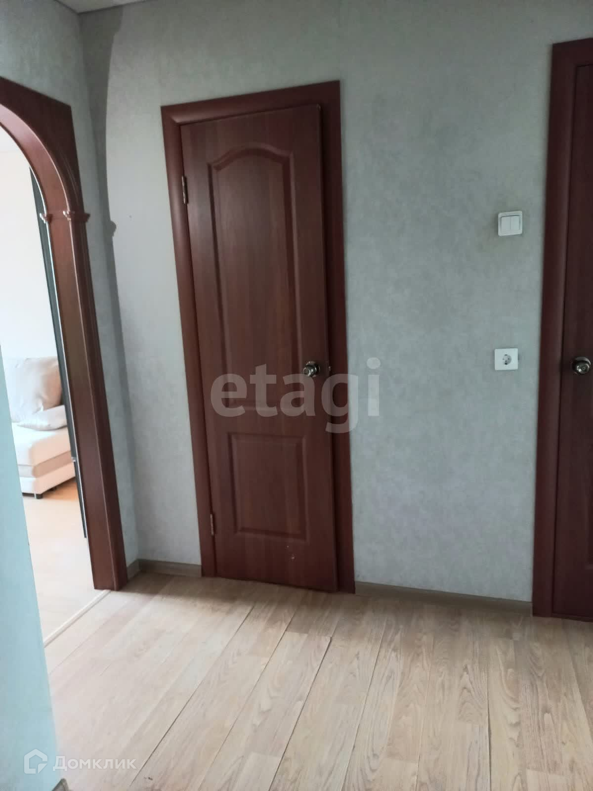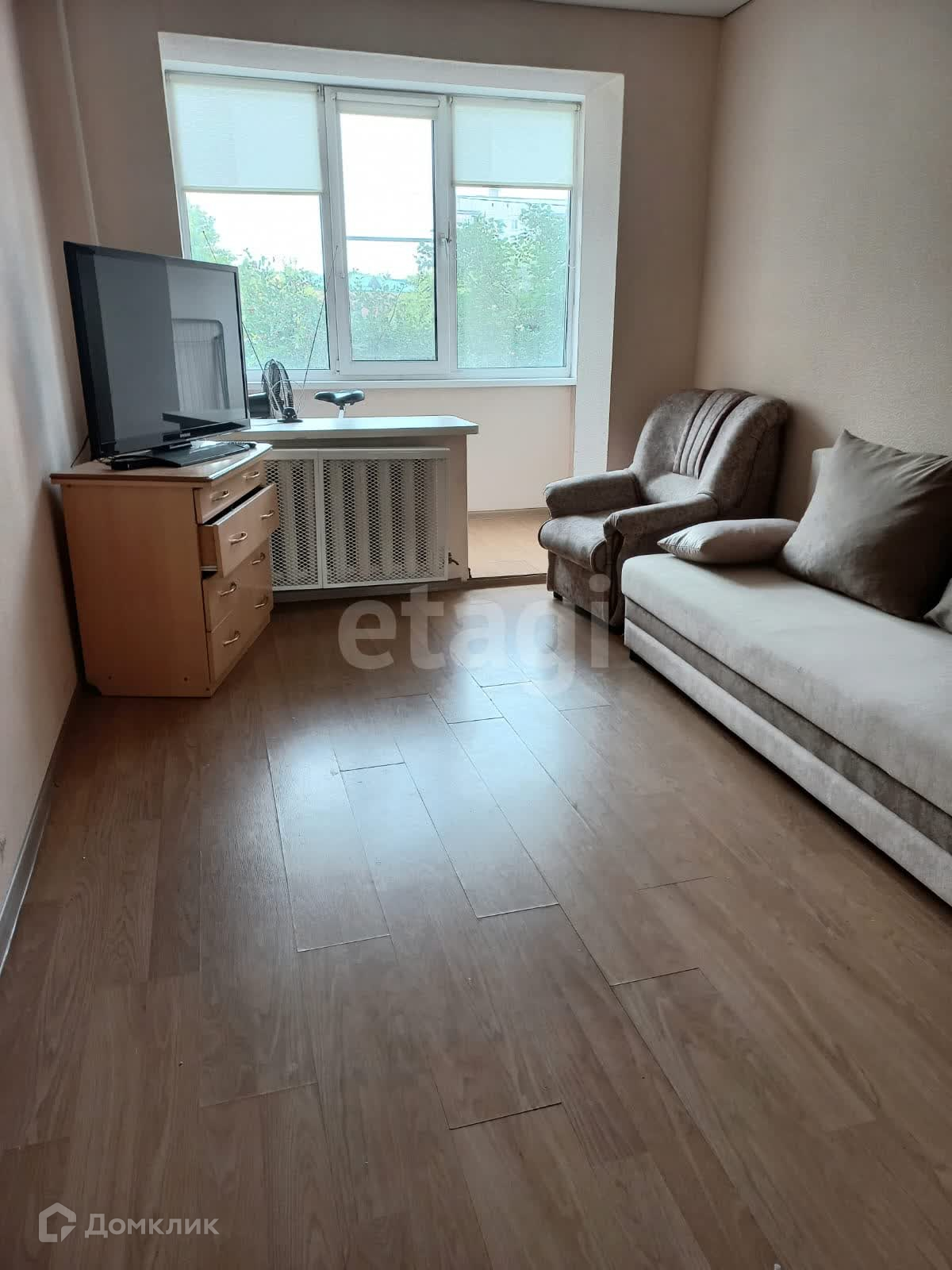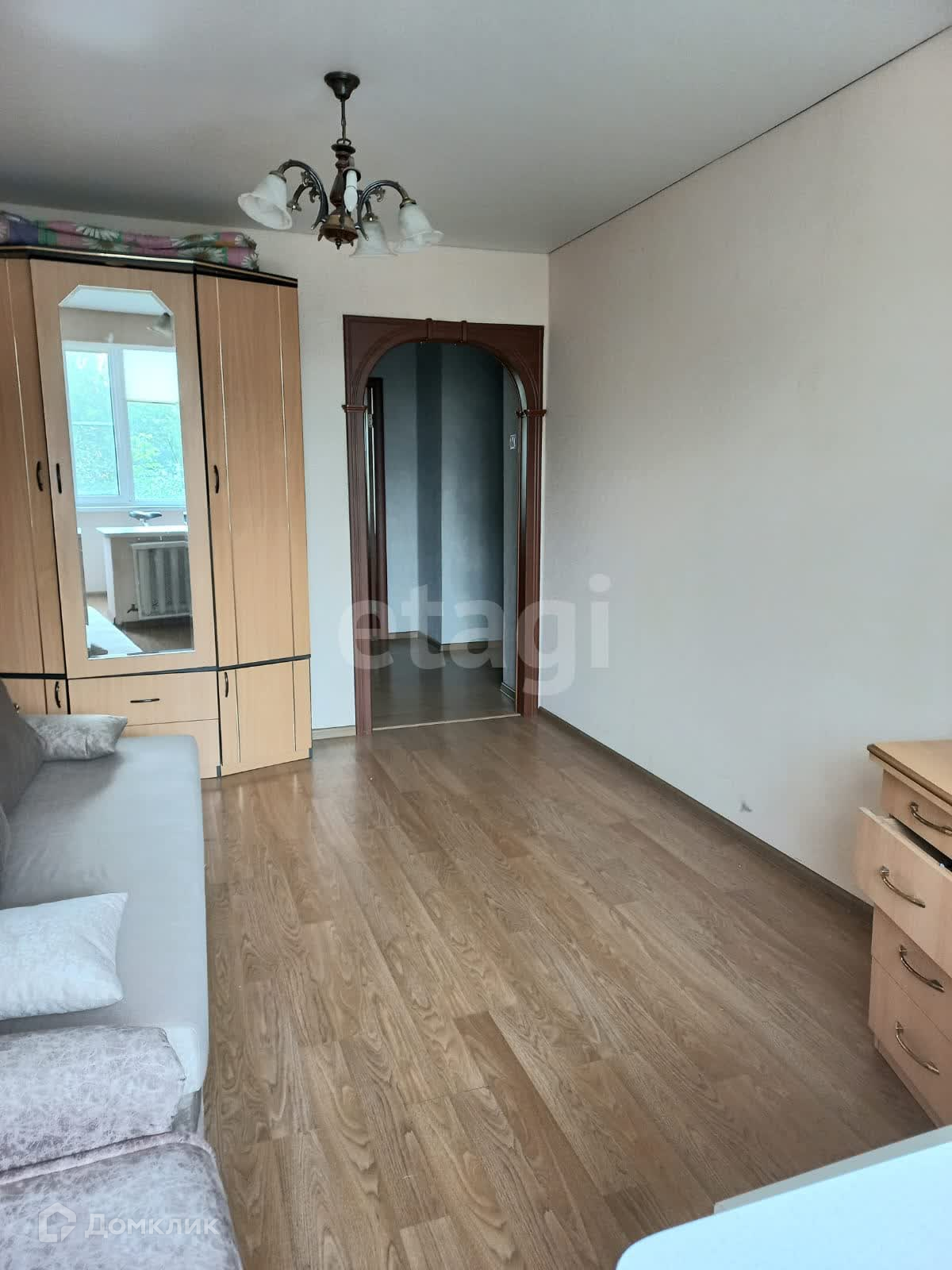 В квартире выполнен современный ремонт, стены - обои, натяжной потолок, в санузле керамическая плитка, душевая кабина. Установлены межкомнатные двери. При продаже остается кухонный гарнитур с техникой, вместительные шкафы. Застекленный балкон совмещен с комнатой,