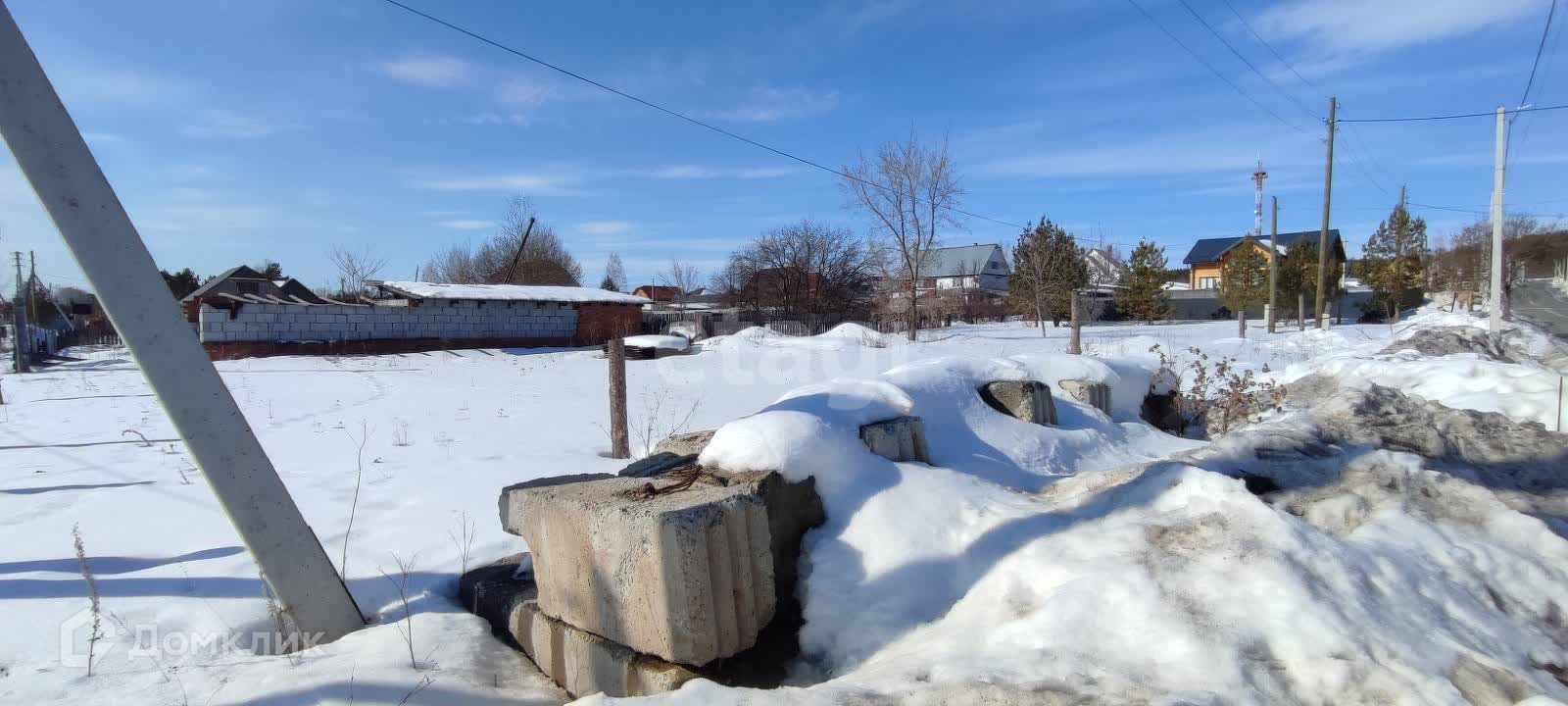 Участок правильной прямоугольной формы, столб с электричеством находится на границе участка. На участке сделан капитальный фундамент 6*6.