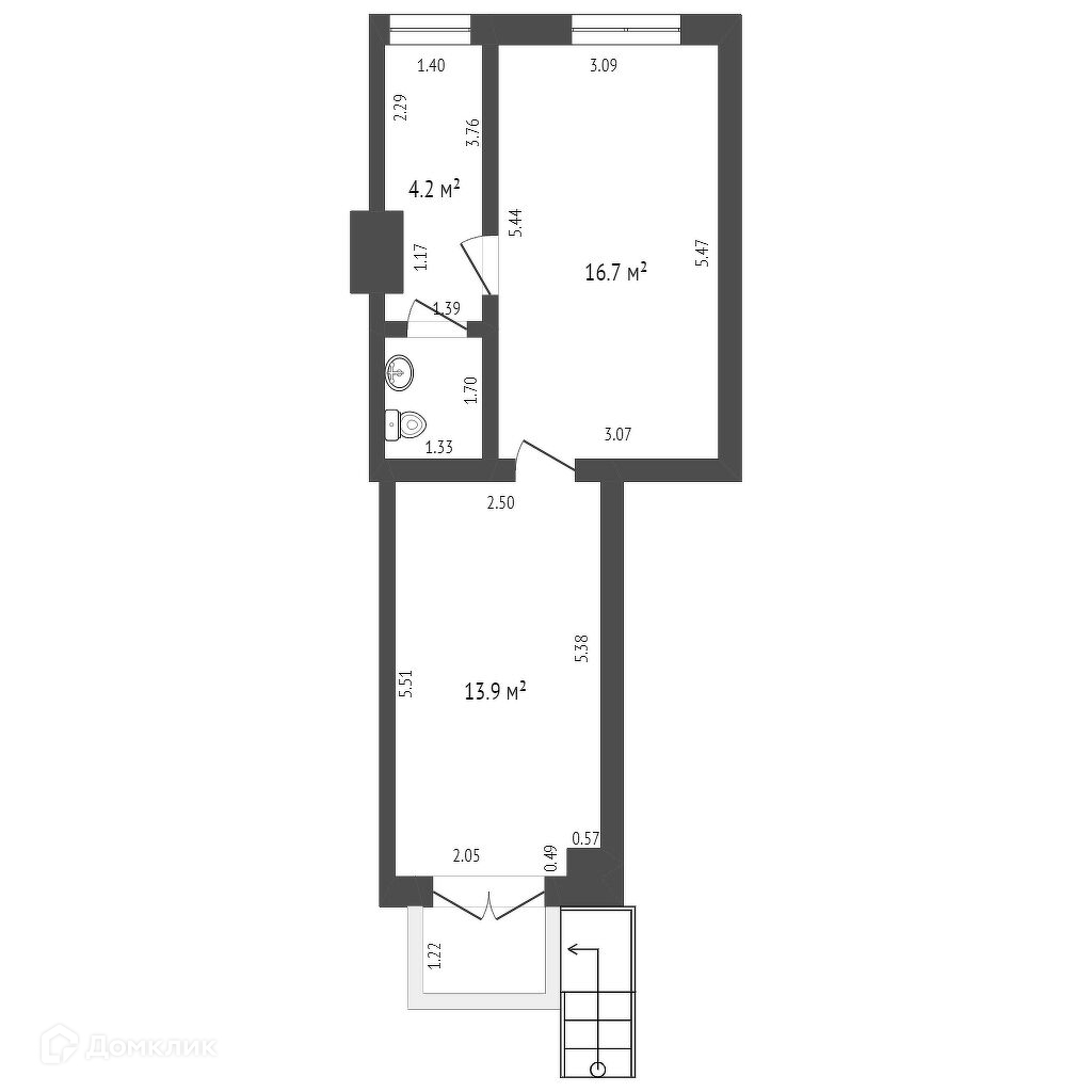 Общая площадь 37.6 м2