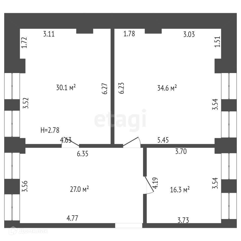Три из которых изолированы, площадью 30,34,16 кв.м. - четвертый, общий - 27 кв.м.
