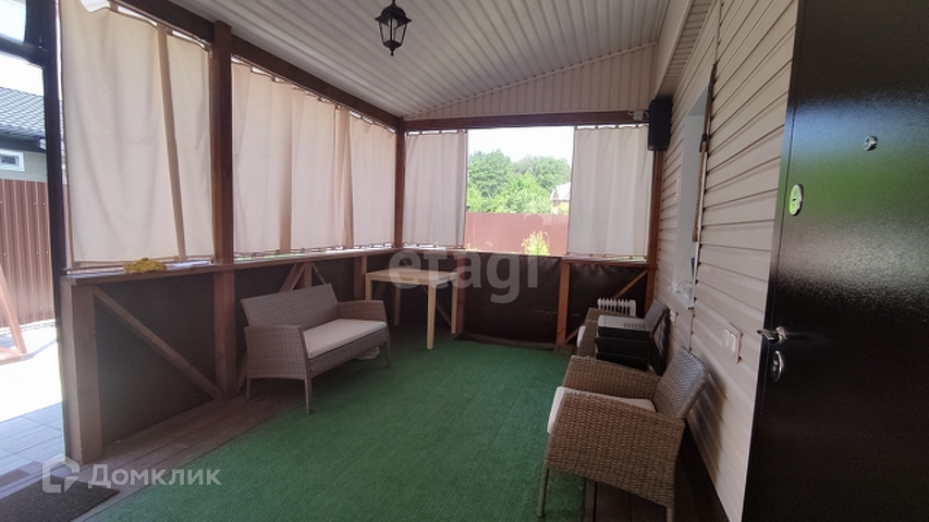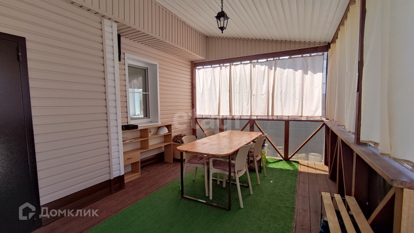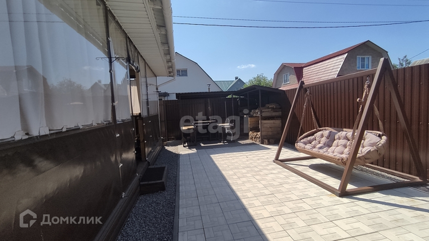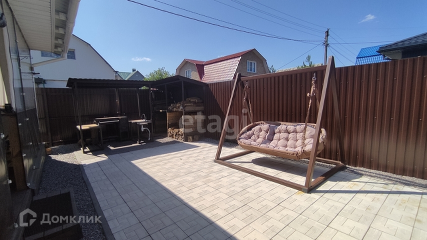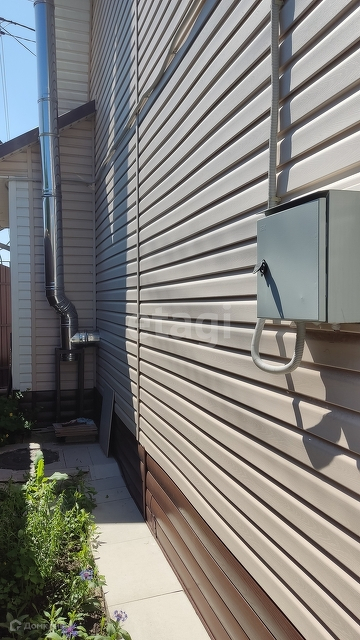 Дом кирпичный, обшит сайдингом. Просторная веранда с мягкими окнами. Обустроена мангальная зона.