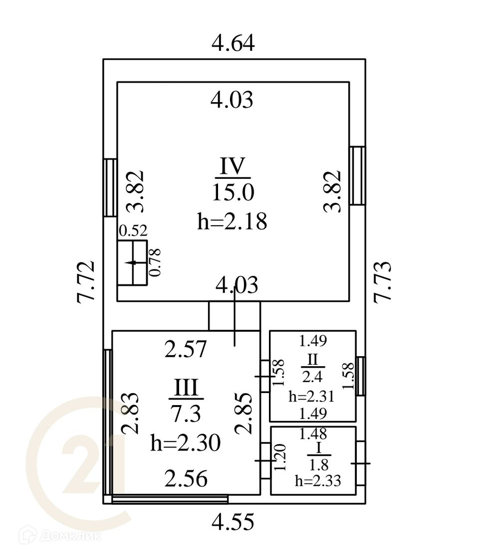 Кухня квадратная, с двумя окнами, санузел также оборудован окном, большая комната первого этажа с видом на сад.