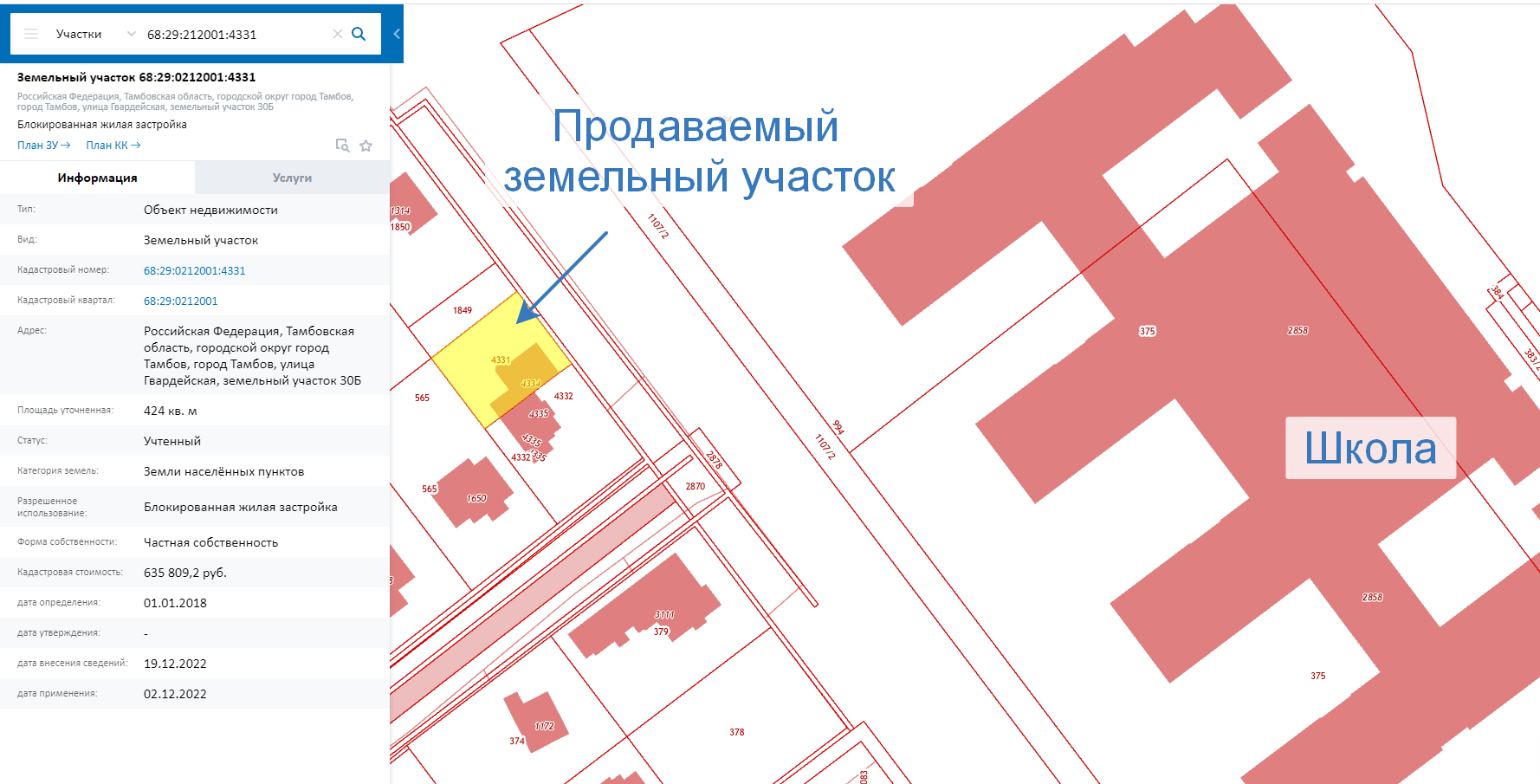 Кадастровый номер земельного участка: 68:29:0212001:4331