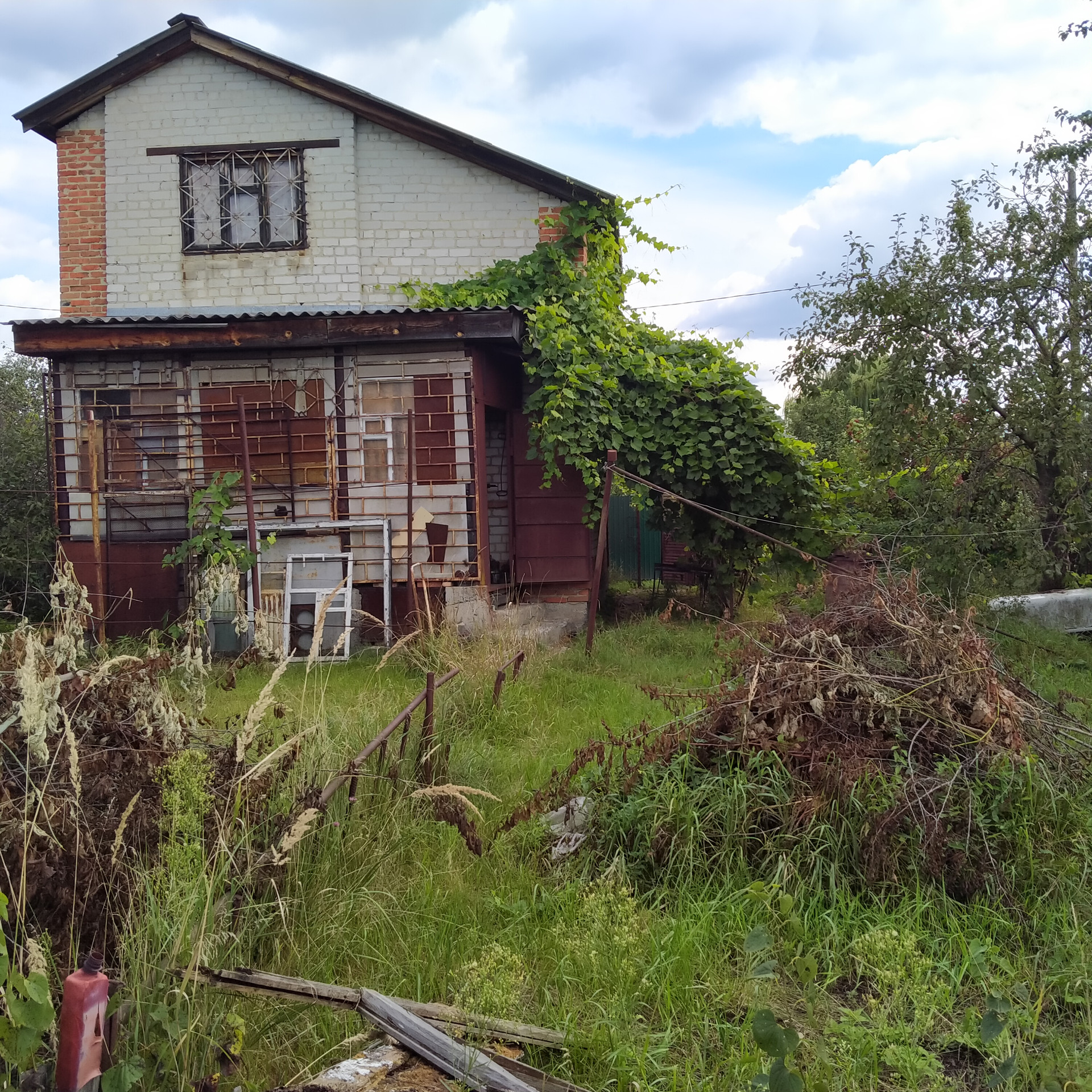 Кирпичный двухэтажный дом в полтора кирпича толщина стены. Перекрыт плитами. Потолки высокие. Свет  проведен для зимнего проживания. Комната на первом этаже отделана и меблирован. Второй этаж с частичной отделкой.  Вода для полива круглосуточно. Есть въезд на участок. СНТ Рядом с городом, по старой тулиновской дороге.